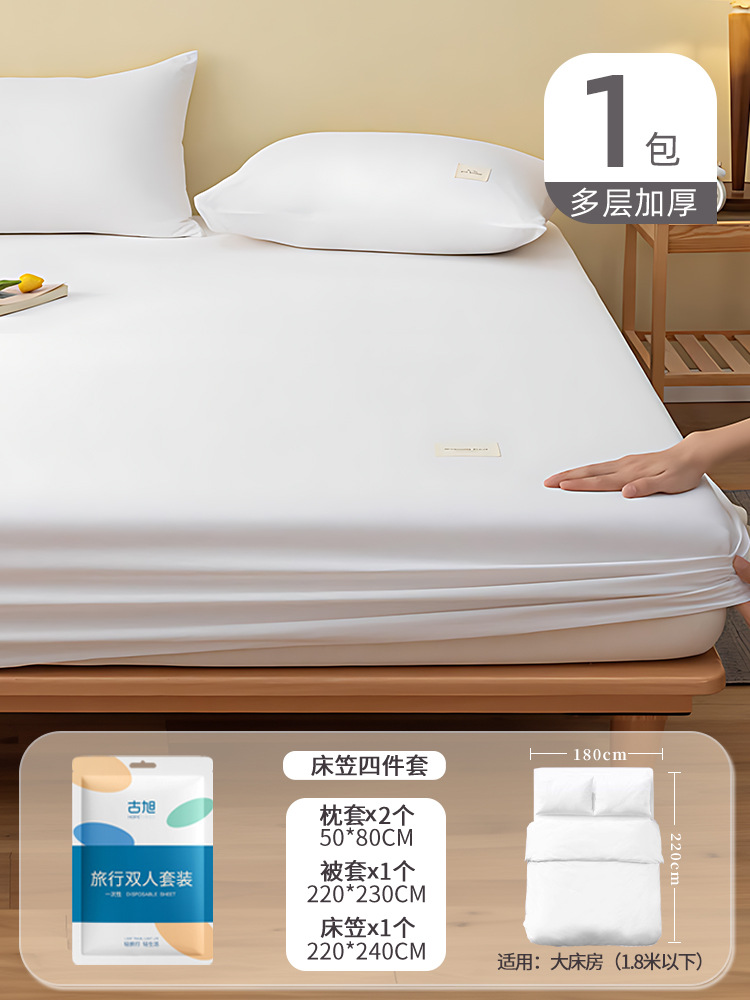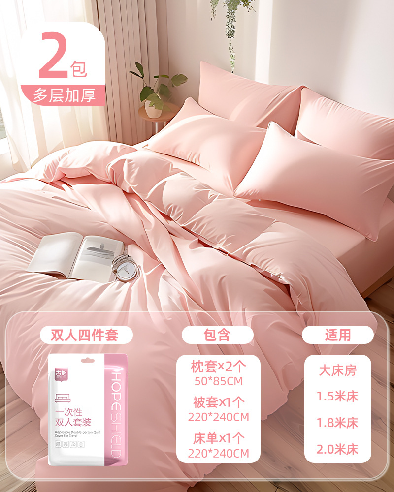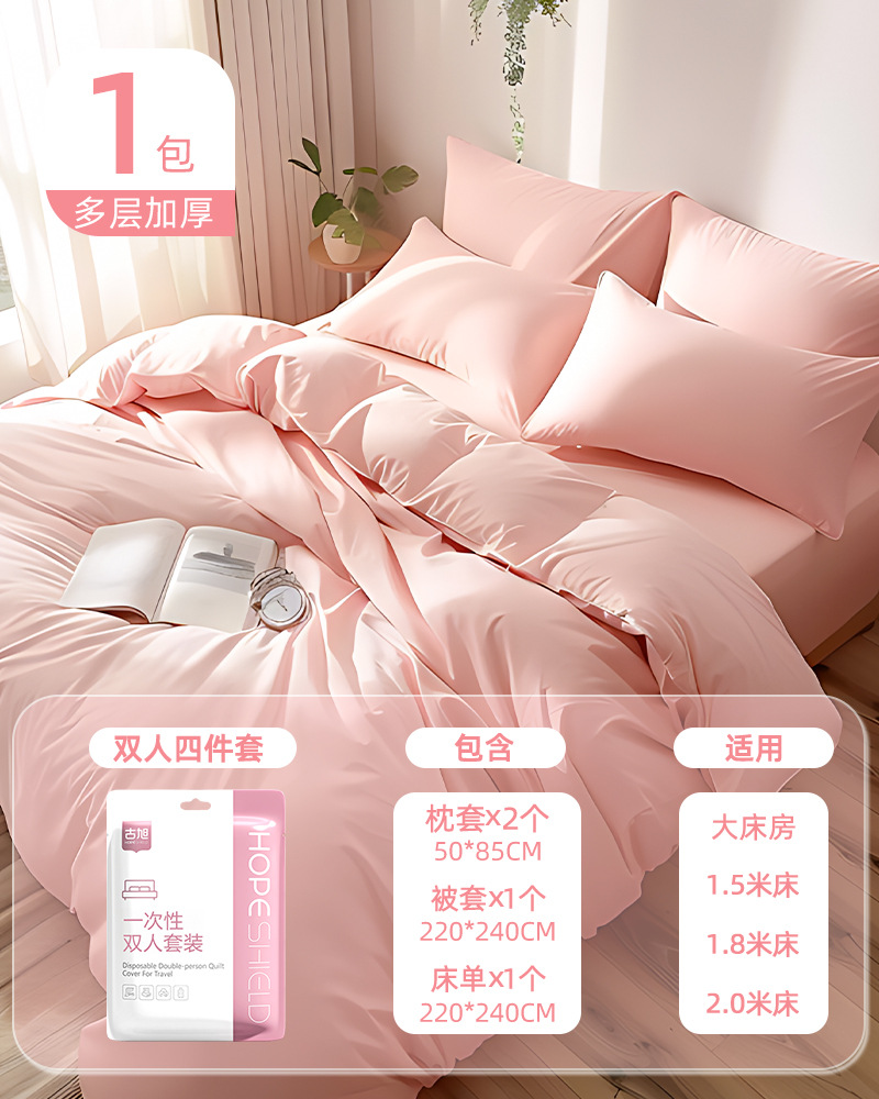 일회용 침대 시트 퀼트 커버 베개 케이스 침대 커버 더러운 살균-무료 여행 호텔 더블 4 피스 침구 세트