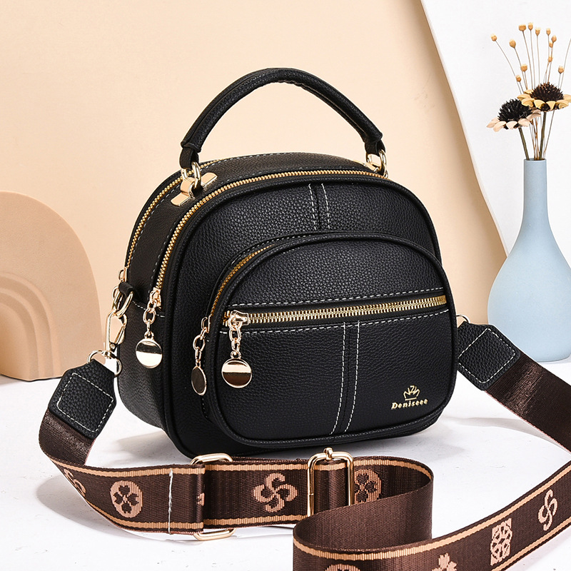새로운 서양식 대용량 국경 작은 어깨 휴대용 멀티 포켓 대용량 와이드 어깨 스트랩 여성 크로스 바디 작은 라운드 백