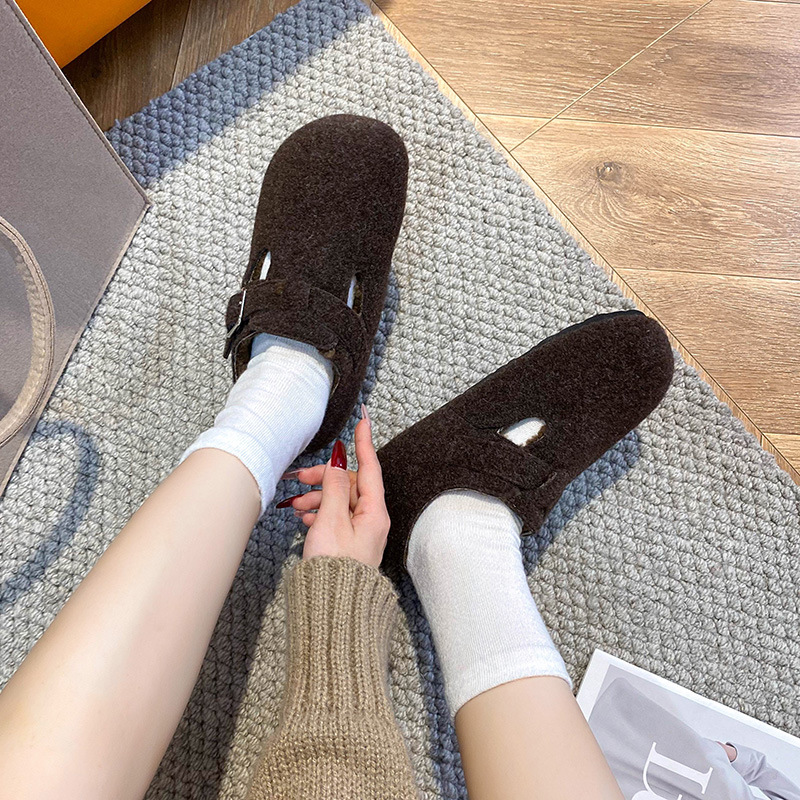 A267 Huidong Yixinda Faux 양 따뜻한 게으른 Baotou 한 캐릭터 버클, 마오 마오 두꺼운 밑창 Birkan 신발스토어 가기