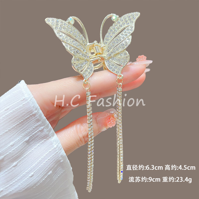 • 새로운 중국 스타일의 시원한 라인스톤 나비 클립