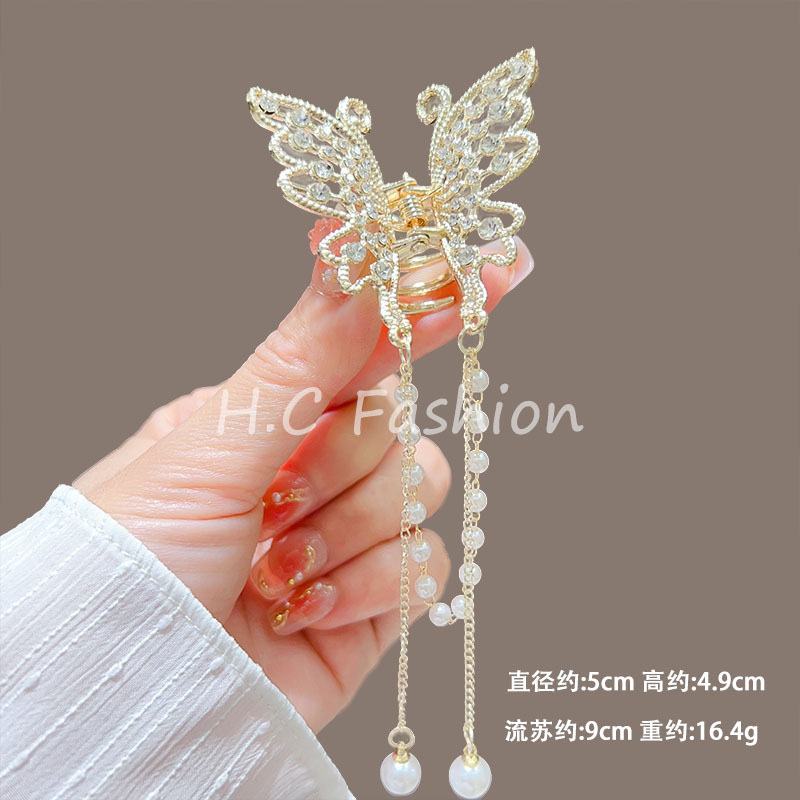 새로운 금속 나비 머리핀 여성 합금 우아한 반 넥타이 헤어 술 펜던트 헤어 액세서리 요정 새로운 뒤 머리 클립스토어 가기