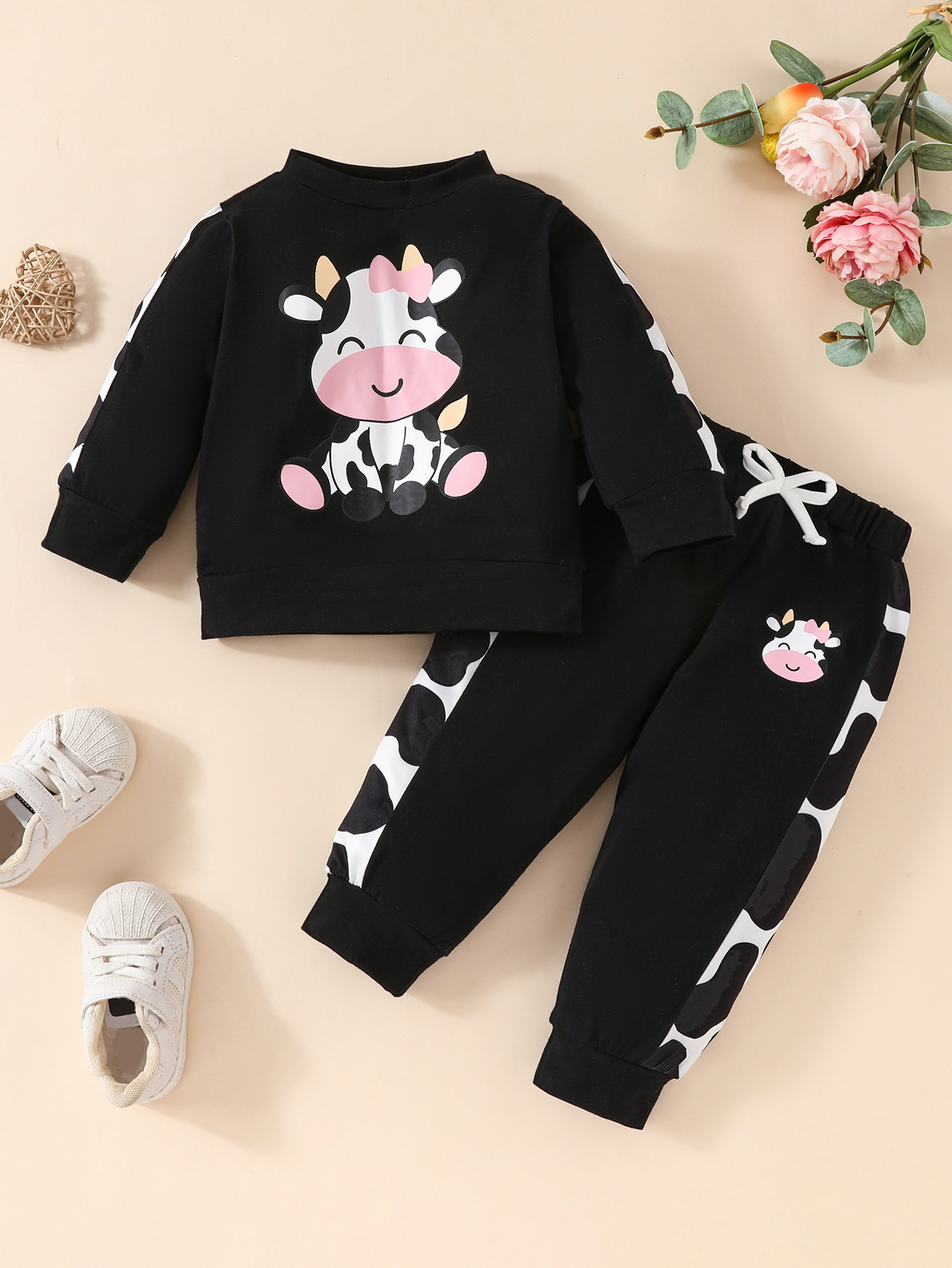유럽과 미국의 대외 무역 국경 봄 가을 편안한 패션 동물 인쇄 소녀 아기 긴 소매 풀오버 세트스토어 가기