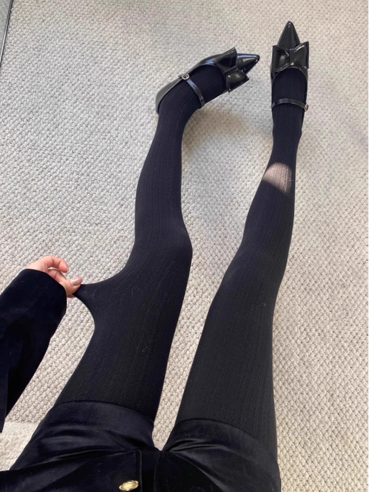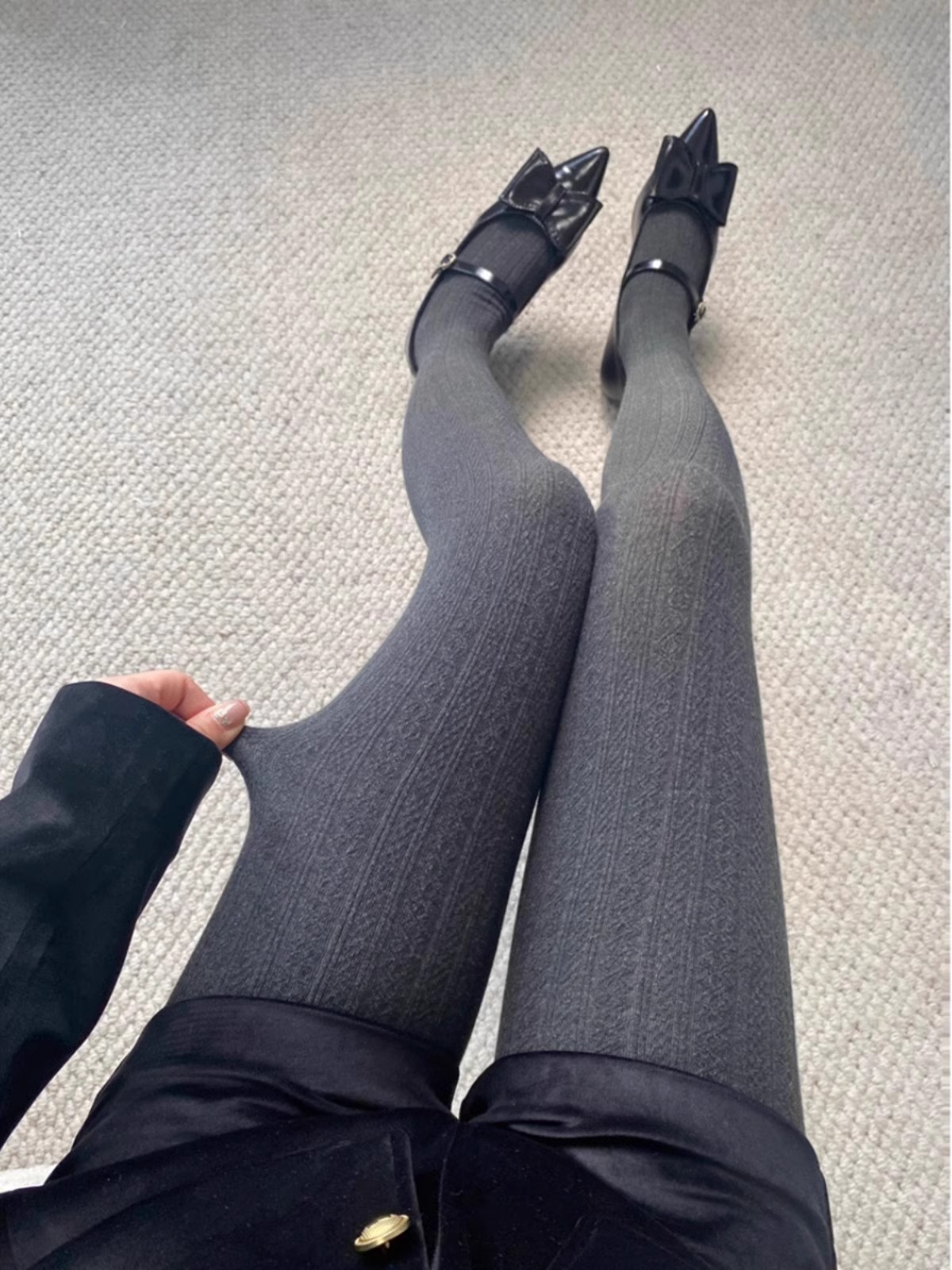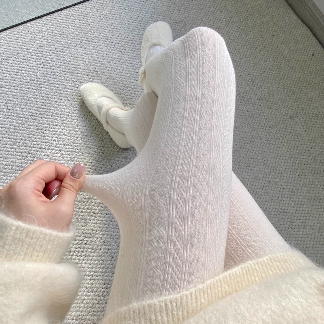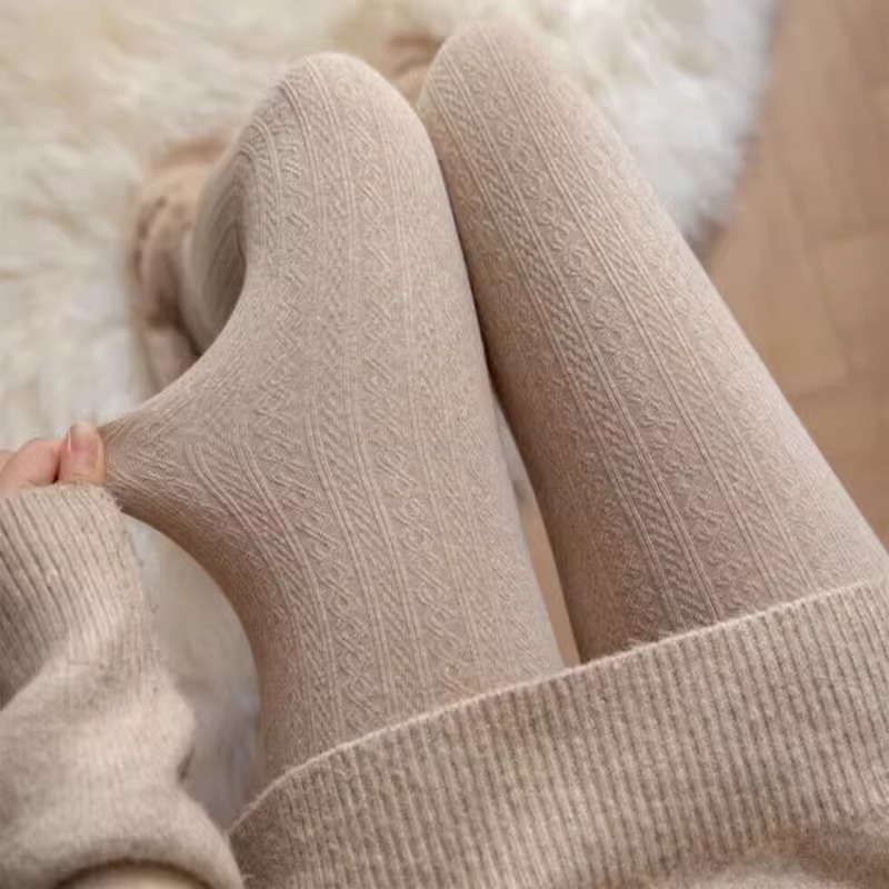 가을과 겨울 새로운 빈티지 대마 패턴베이스 양말 오트밀 컬러 스레드 외부 착용 슬리밍 그레이 팬티 스타킹스토어 가기