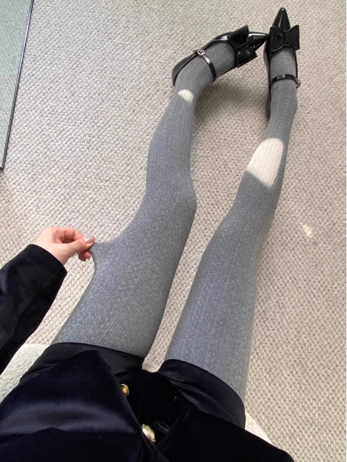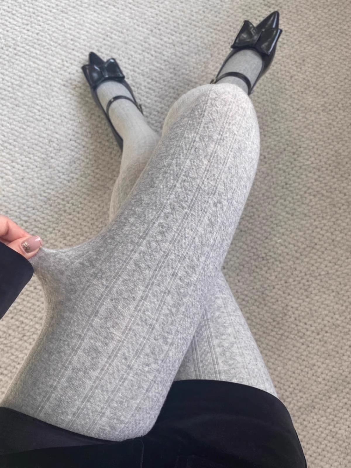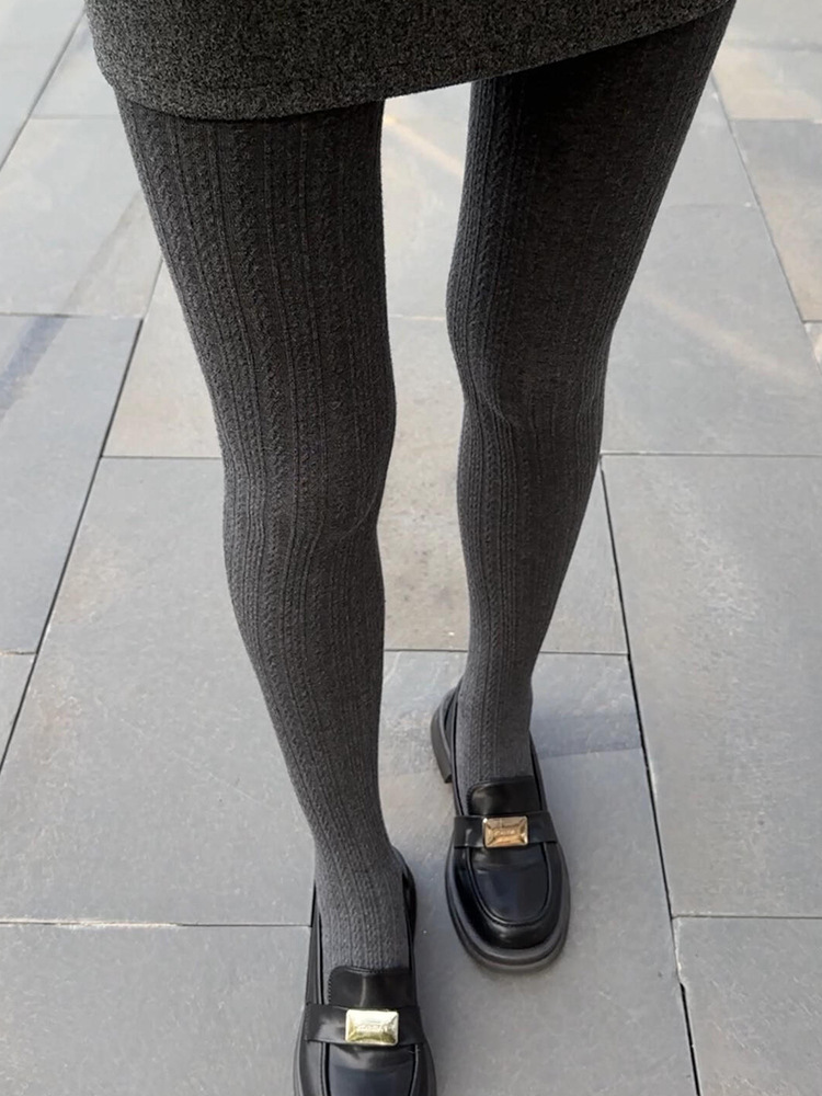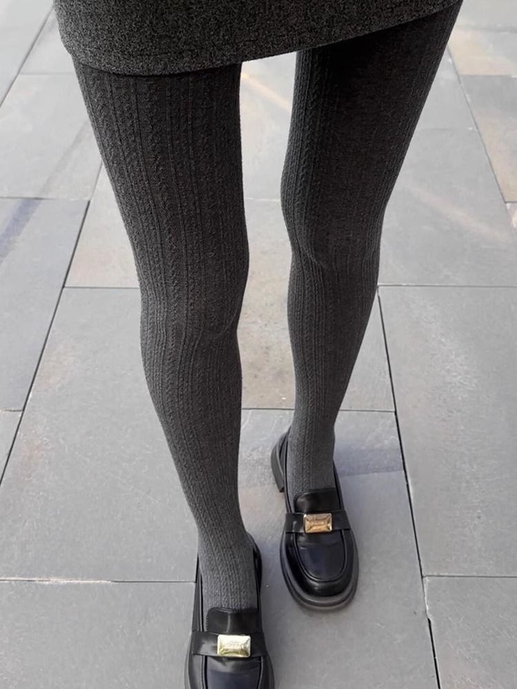 가을과 겨울 새로운 빈티지 대마 패턴베이스 양말 오트밀 컬러 스레드 외부 착용 슬리밍 그레이 팬티 스타킹