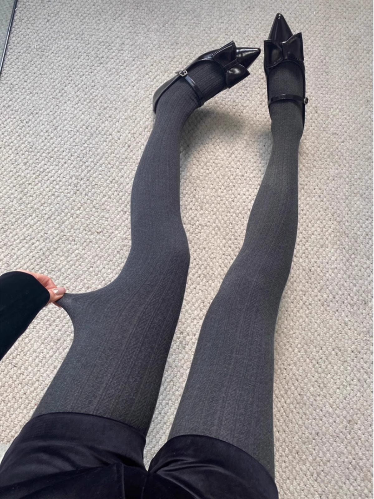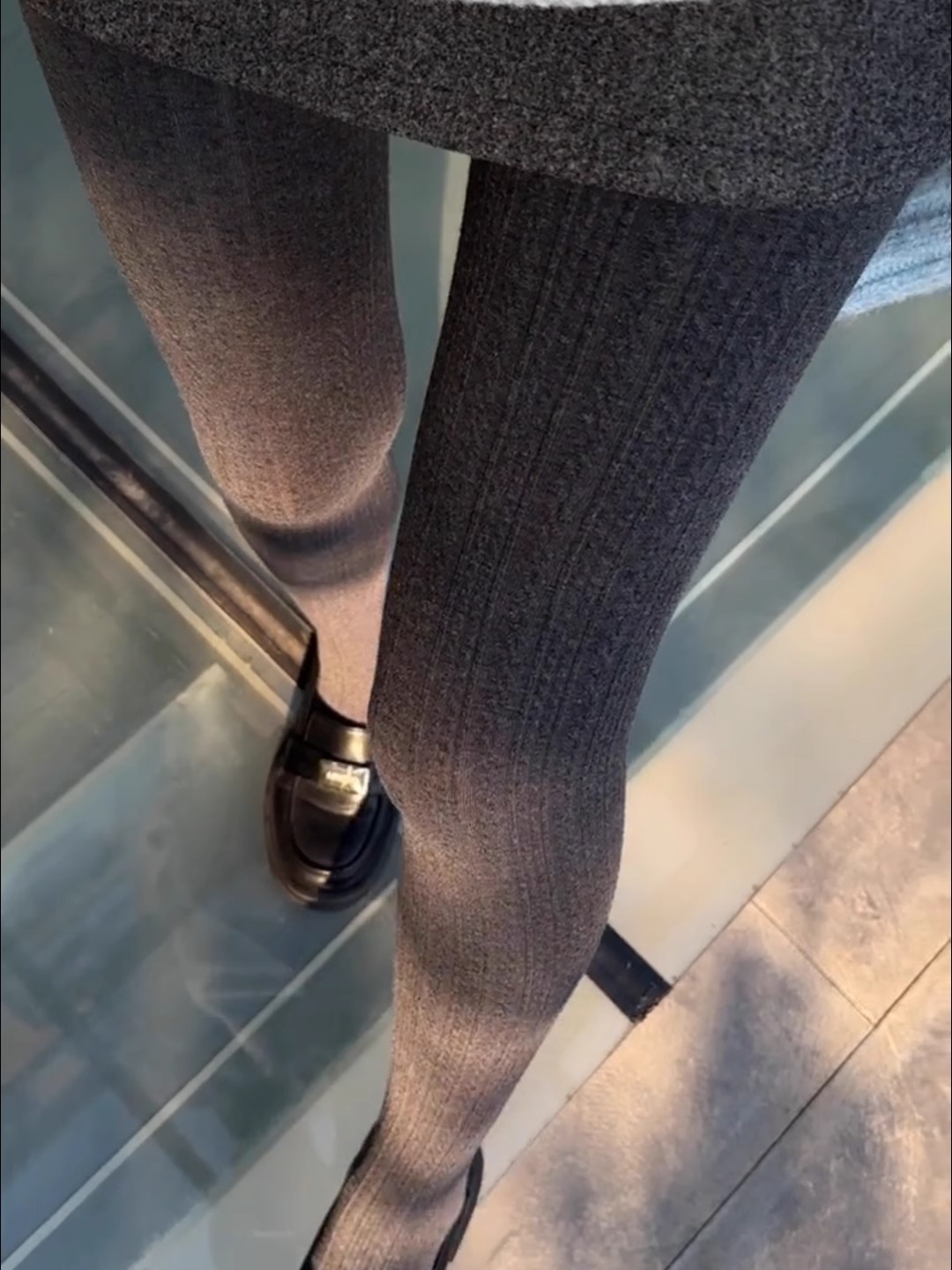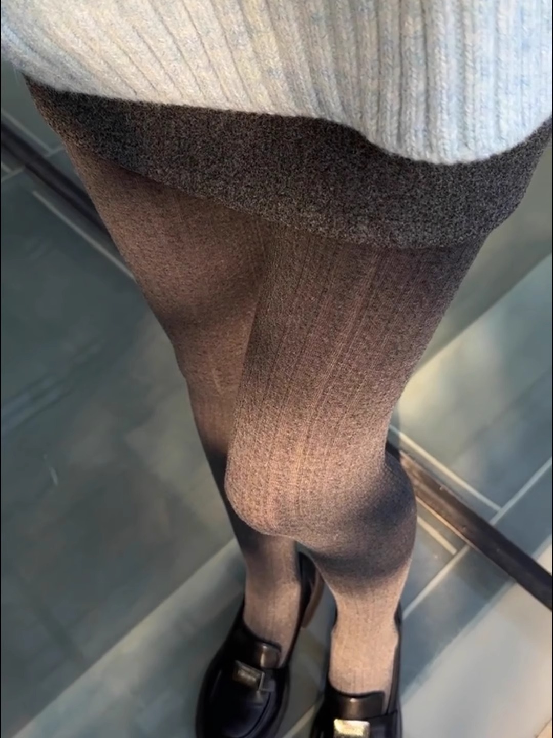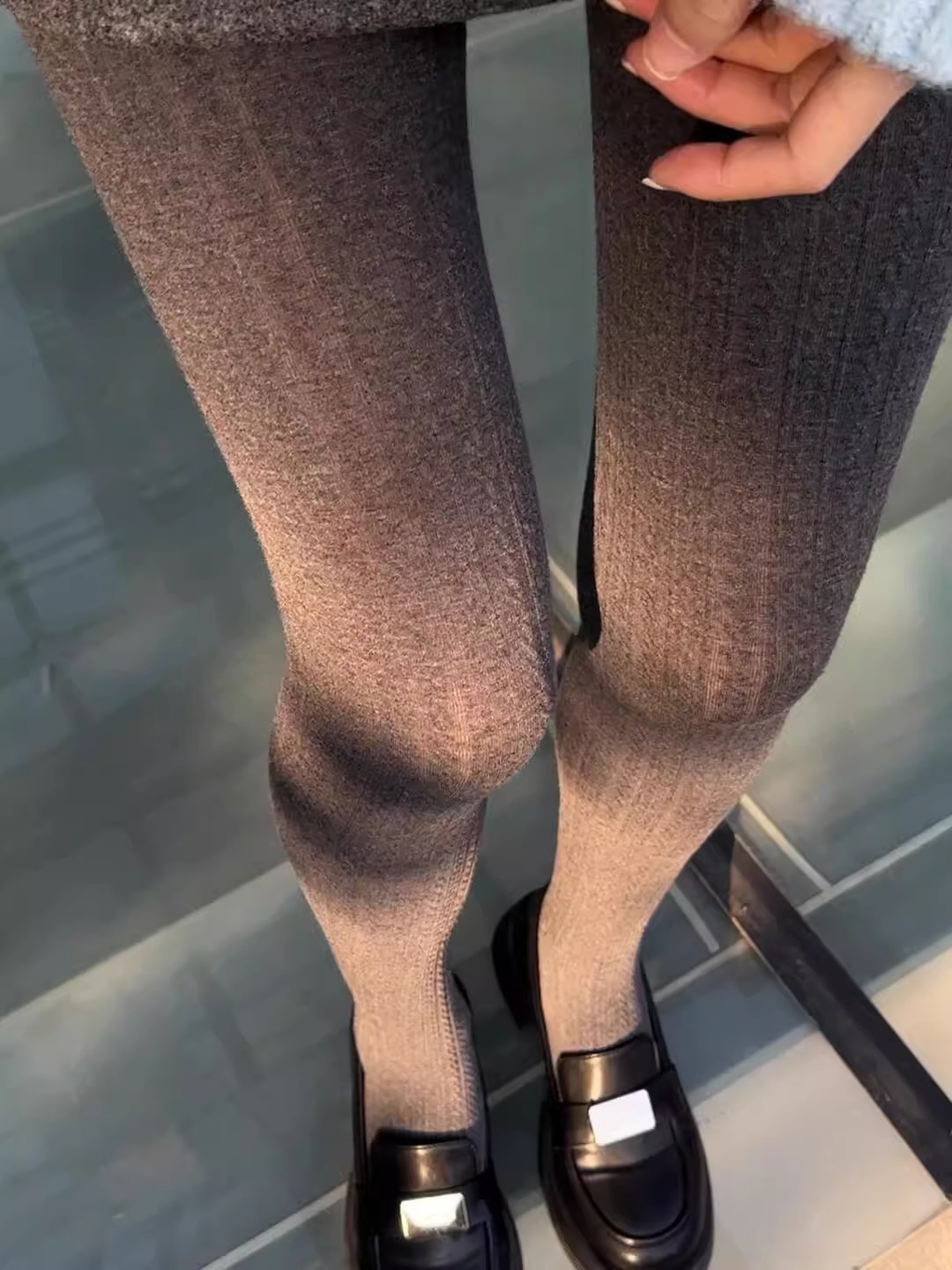 가을과 겨울 새로운 빈티지 대마 패턴베이스 양말 오트밀 컬러 스레드 외부 착용 슬리밍 그레이 팬티 스타킹