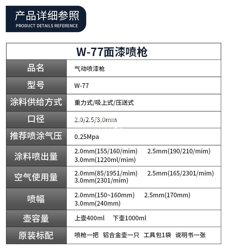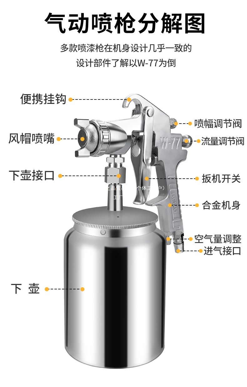 W71/75/77/k3 페인트 라텍스 페인트 공압 스프레이 건 자동차 가구 탑 코트 수리 공기 펌프 스프레이 캔