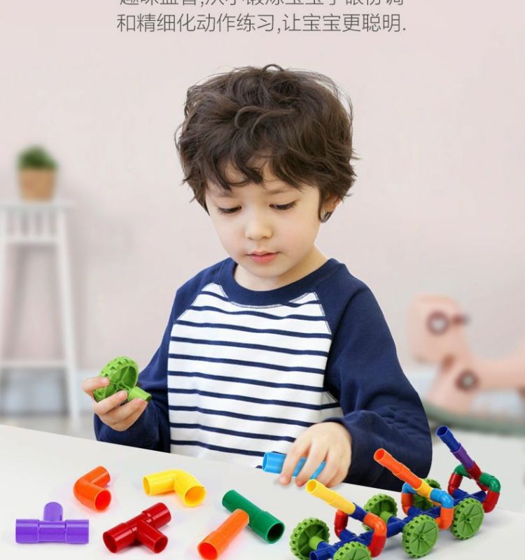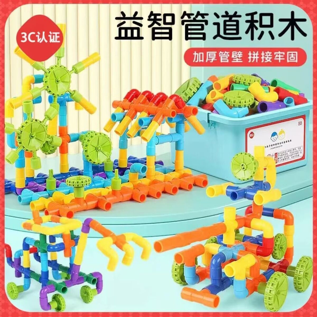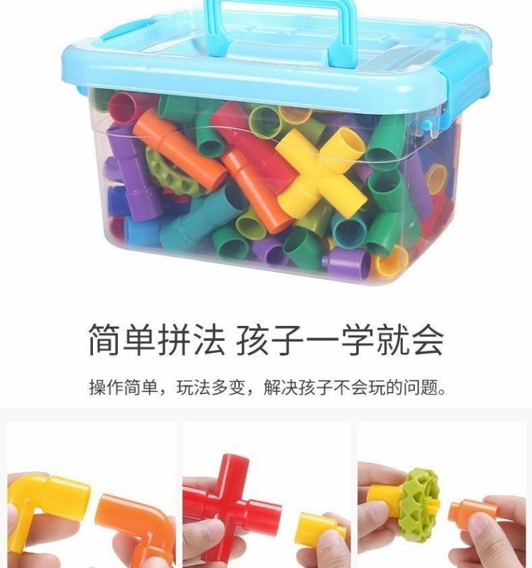 어린이 파이프 빌딩 블록 장난감 조립 워터 파이프 빌딩 블록 퍼즐 유치원 빌딩 블록 조립 장난감 스테레오 하우스스토어 가기
