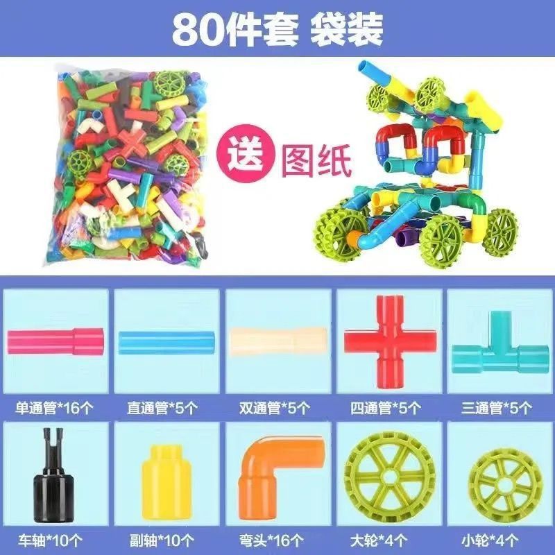 • 80피스 파이프 빌딩 블록 세트(가방 + 도면)