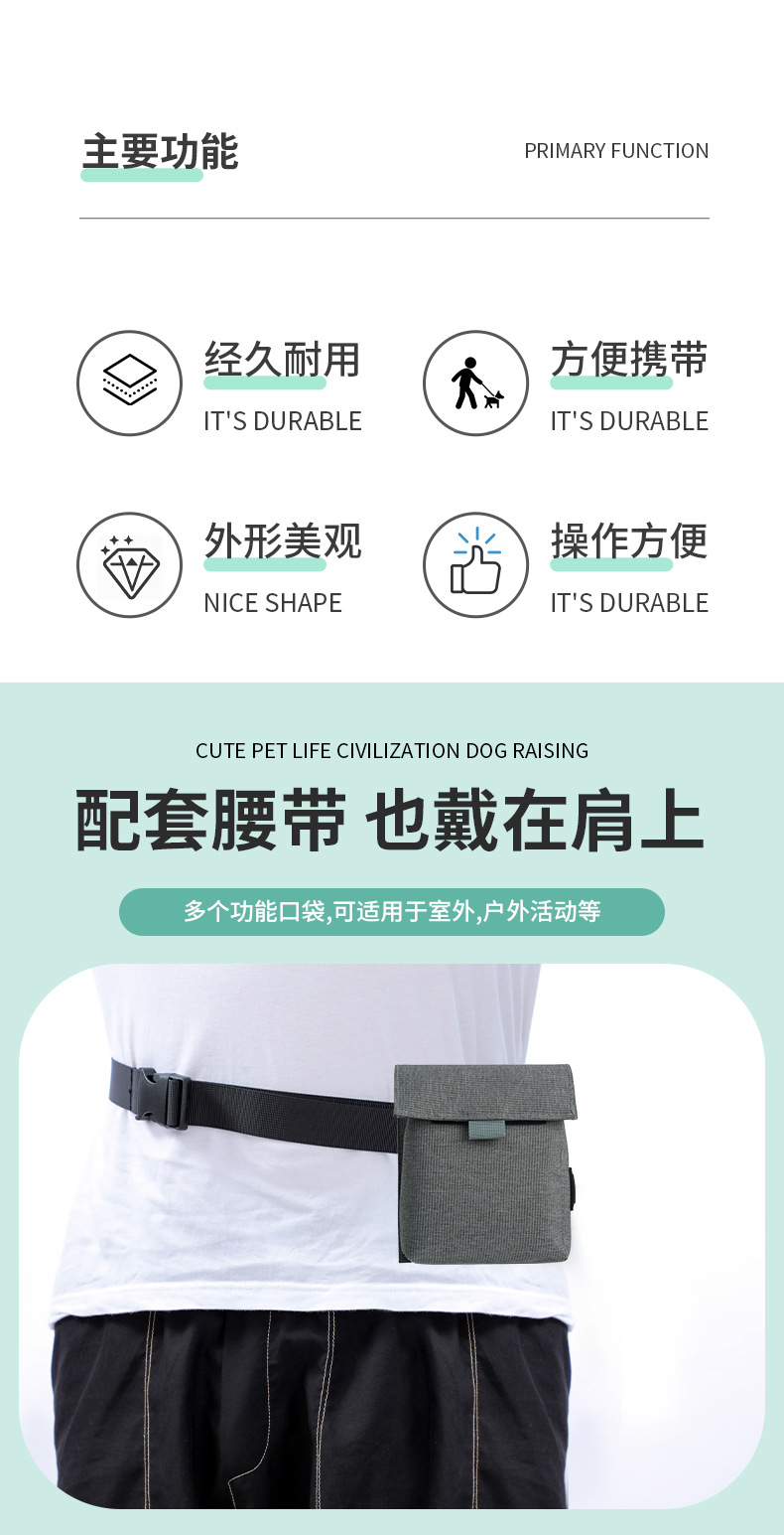 2025 새로운 국경 애완 동물 훈련 보상 가방 개 밖으로 저장 스낵 가방스토어 가기