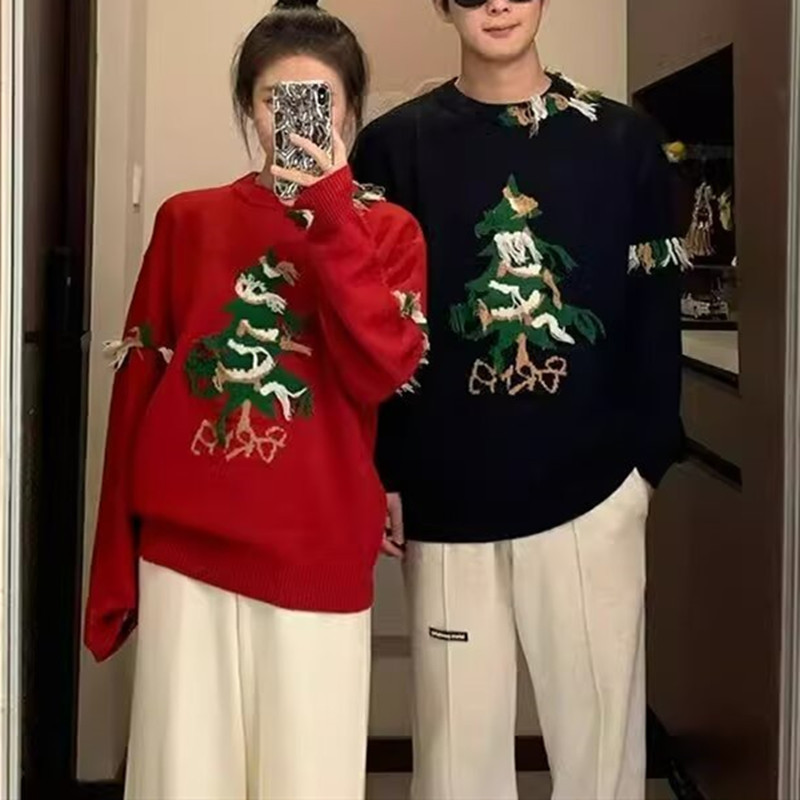 분위기 크리스마스 트리 스웨터 남자 겨울 미국 커플 캐주얼 니트웨어 하이 스트리트 캐주얼 따뜻한 탑 남성과 여성
