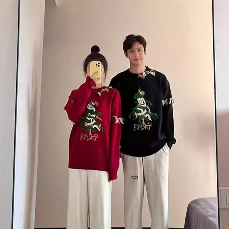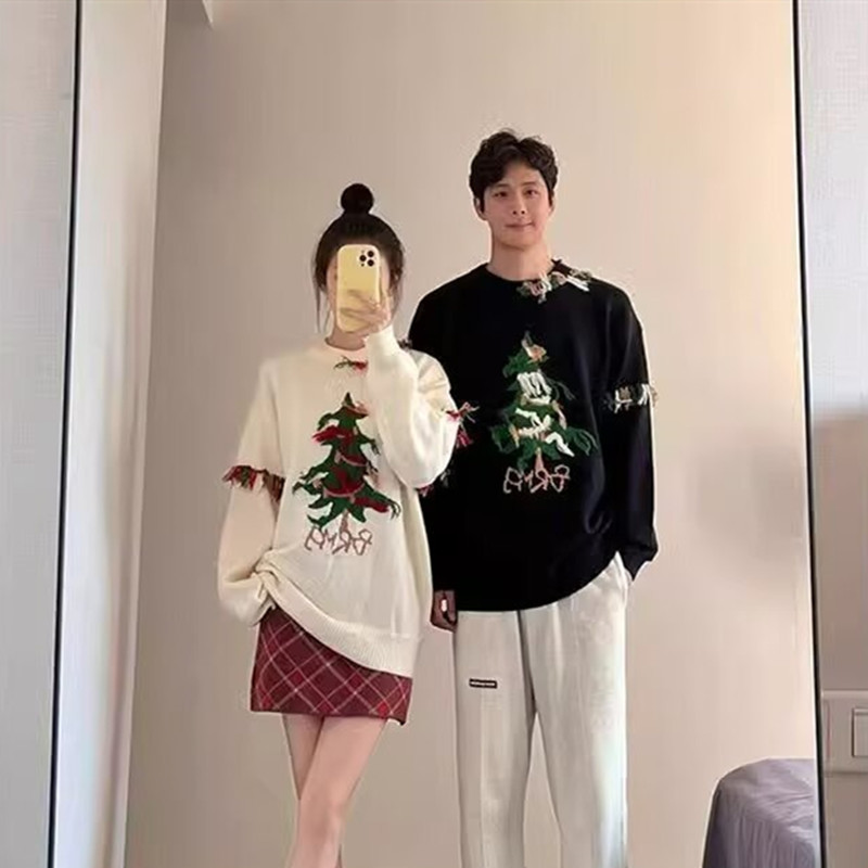 분위기 크리스마스 트리 스웨터 남자 겨울 미국 커플 캐주얼 니트웨어 하이 스트리트 캐주얼 따뜻한 탑 남성과 여성스토어 가기