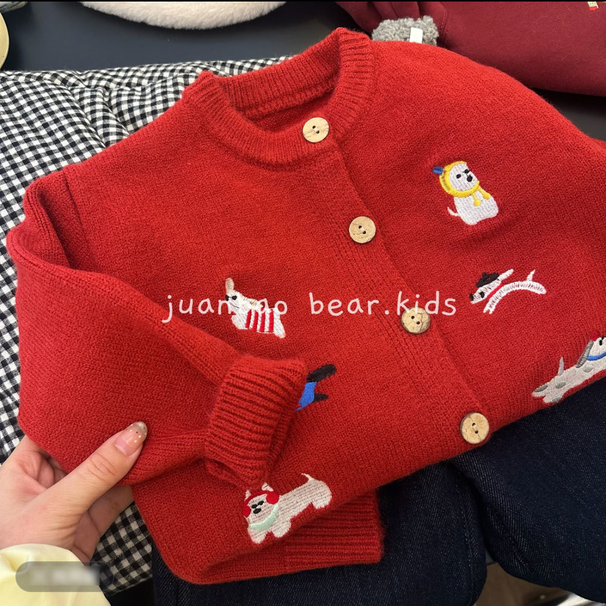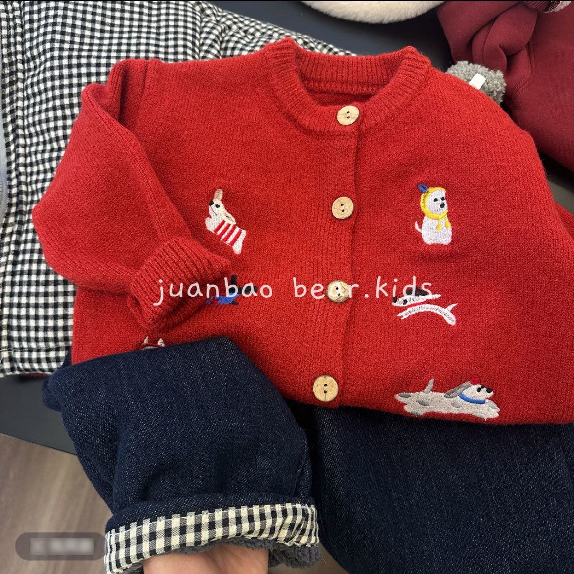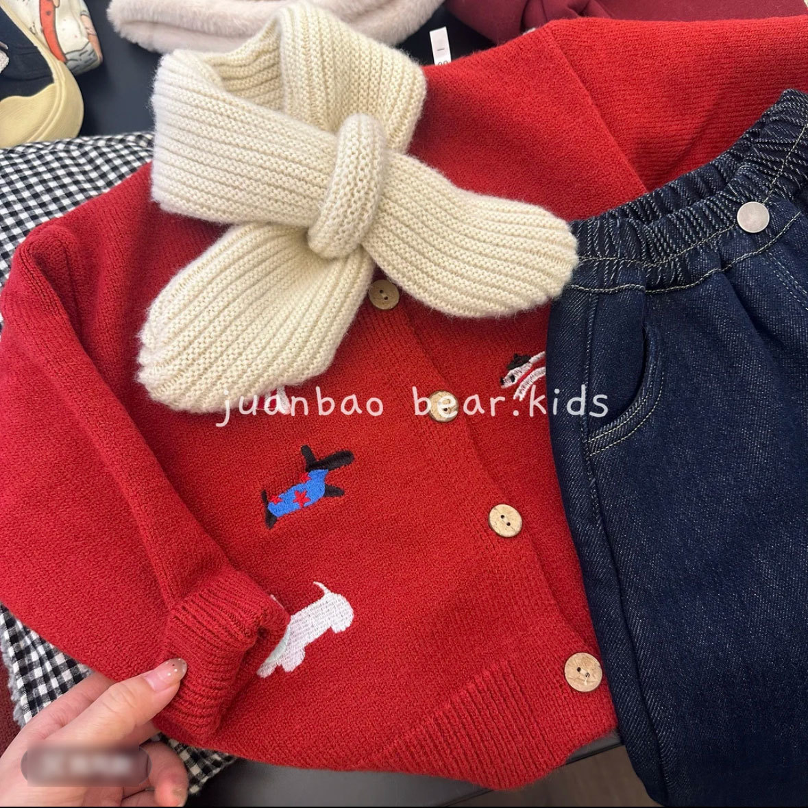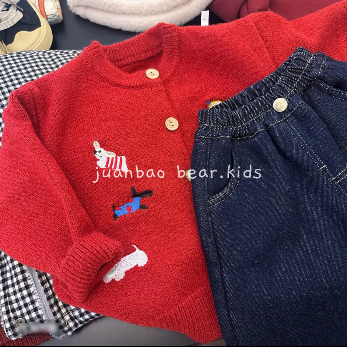 새로운 스타일의 아동용 스웨터, 남아 여아용 세련된 만화 자수 레드 탑 가디건 코트, 아동용 니트 스웨터스토어 가기