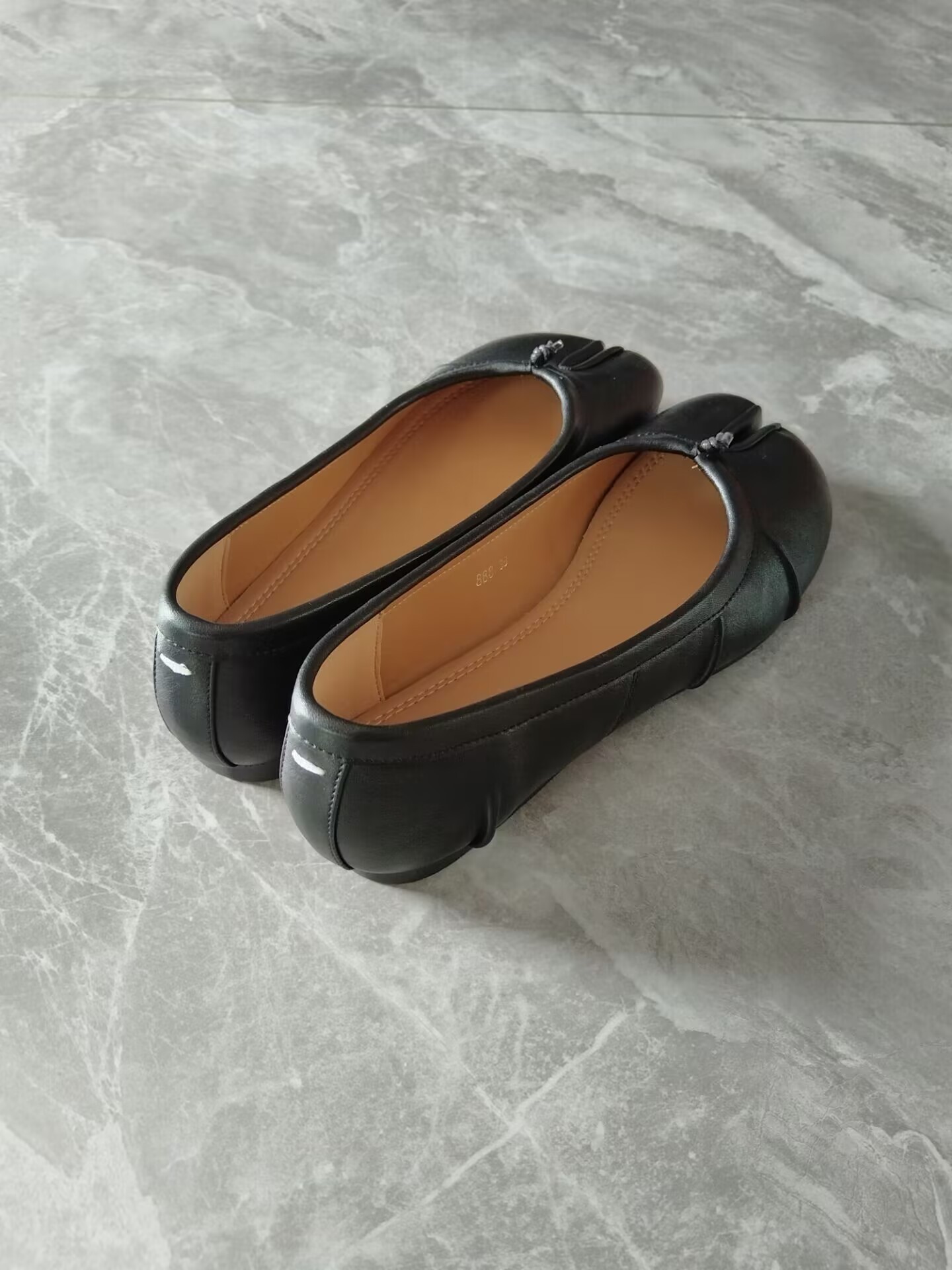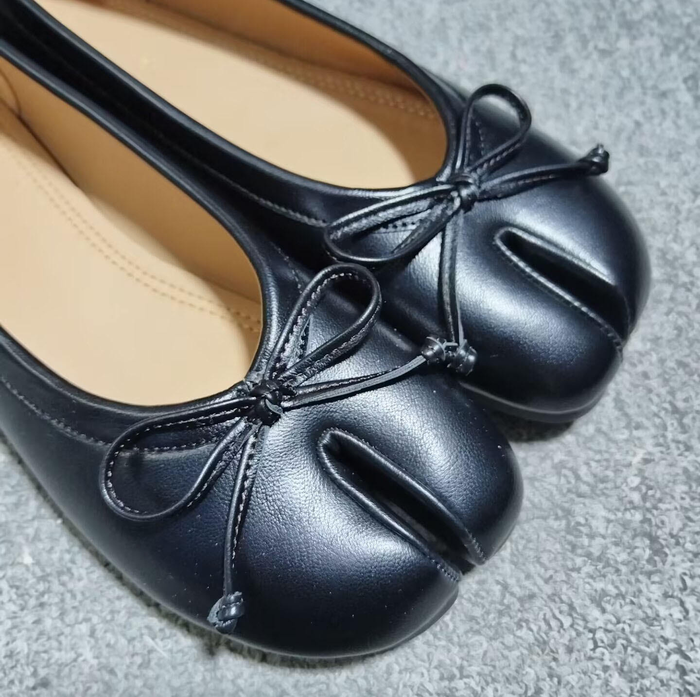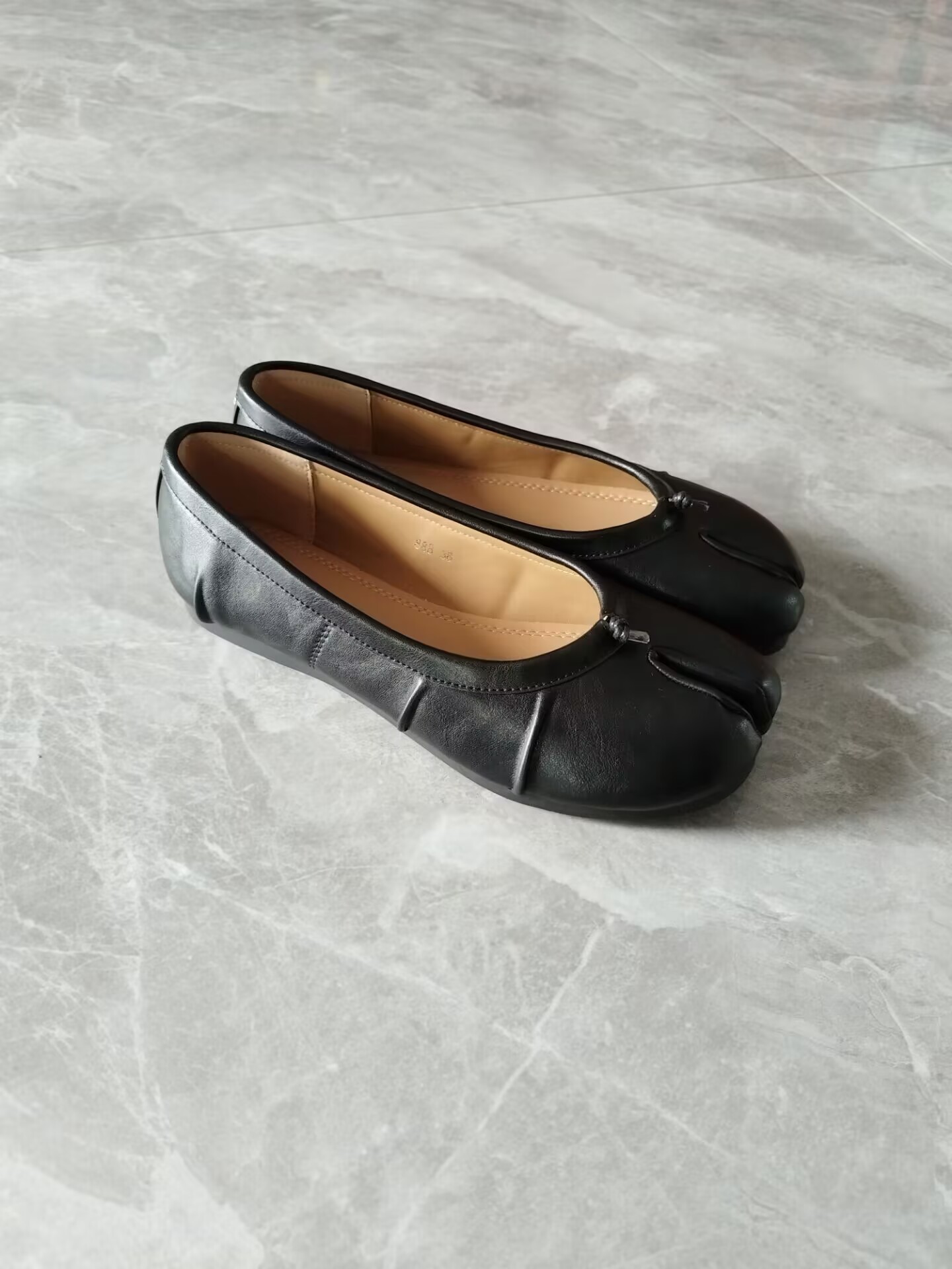타비 스플릿 발가락 신발 여성 2024 새로운 틈새 주름 플랫 발레 신발 얕은 입 1 페달 신발