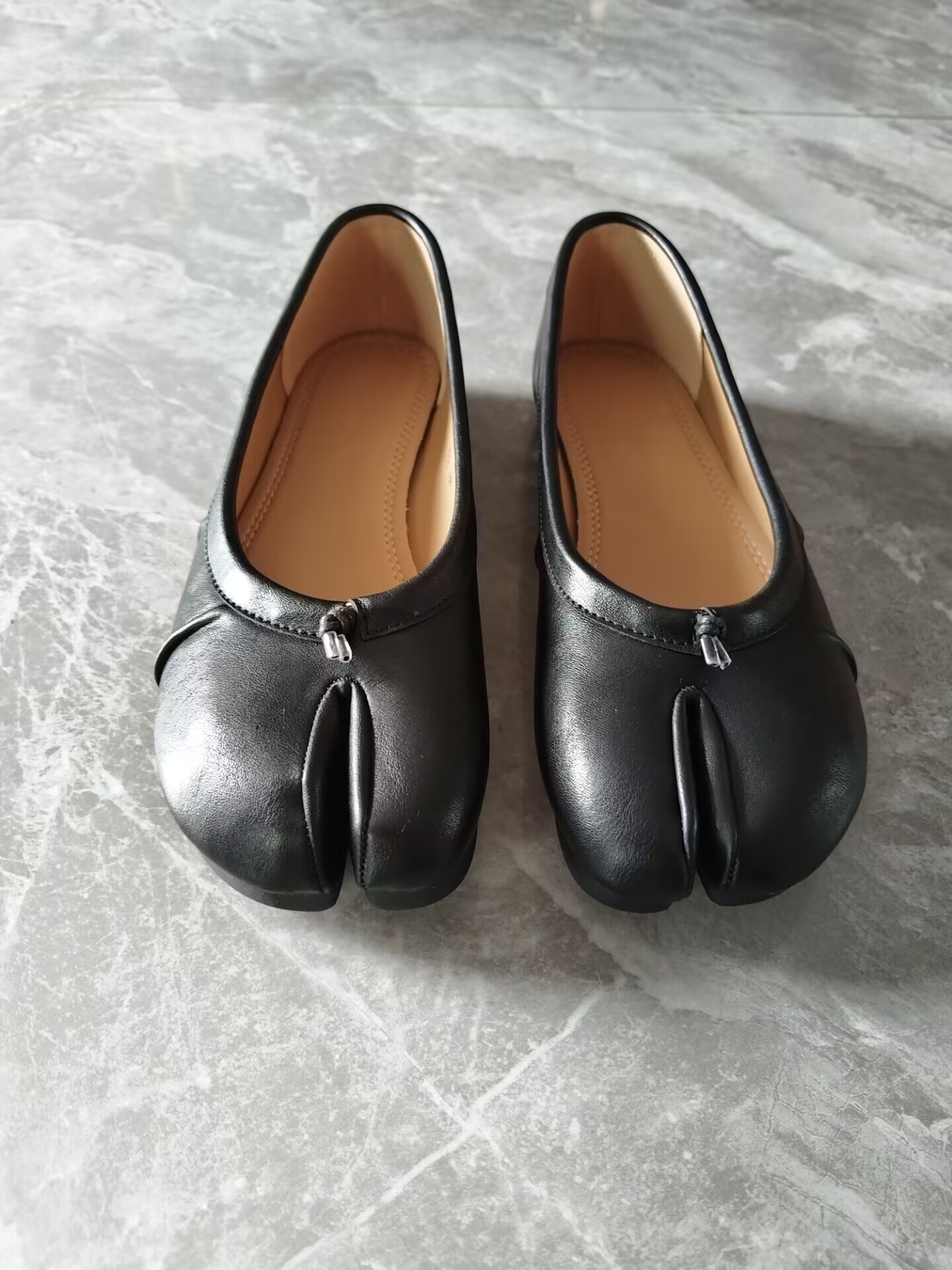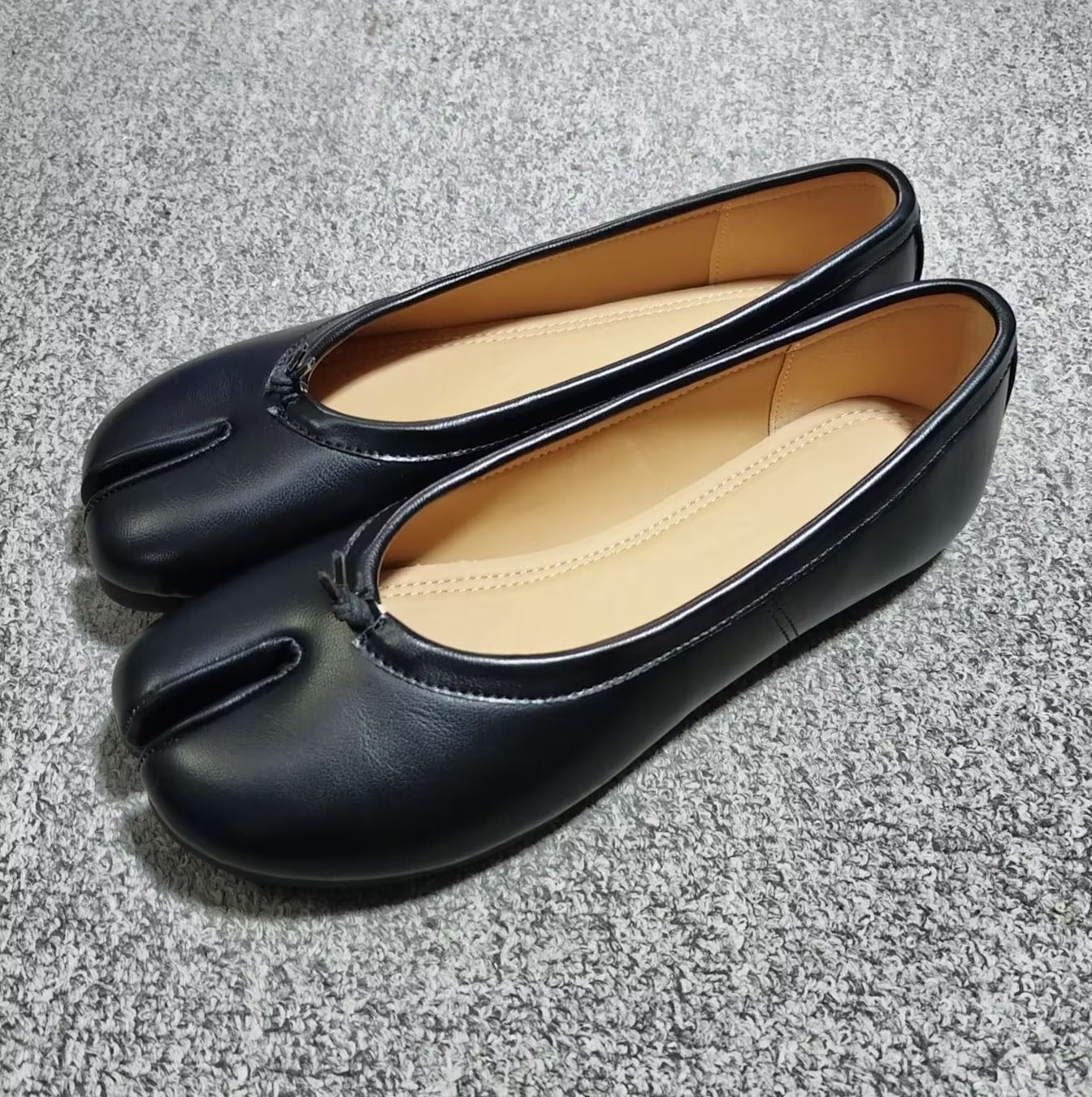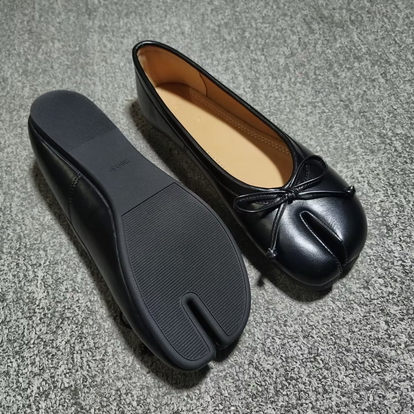타비 스플릿 발가락 신발 여성 2024 새로운 틈새 주름 플랫 발레 신발 얕은 입 1 페달 신발