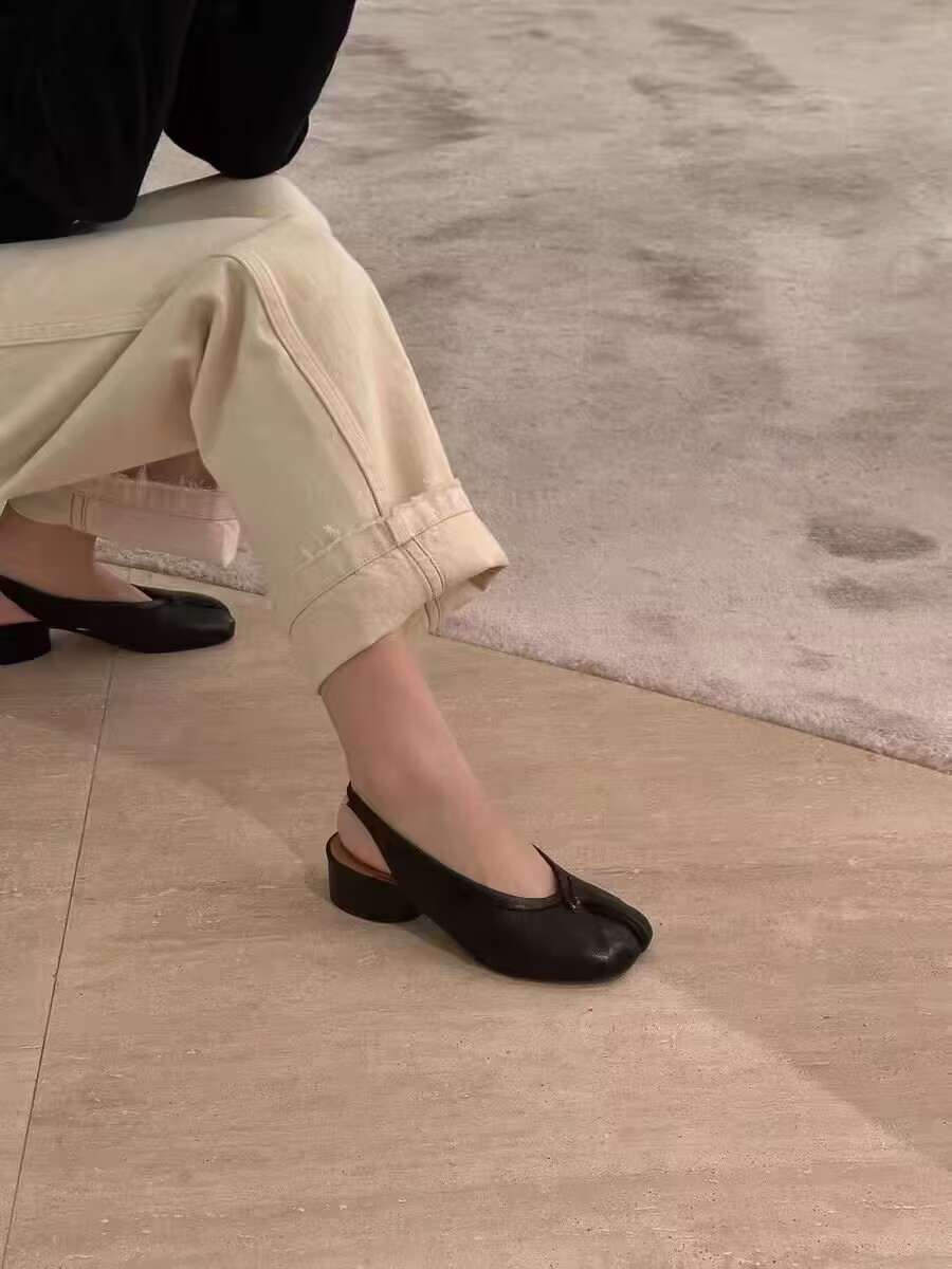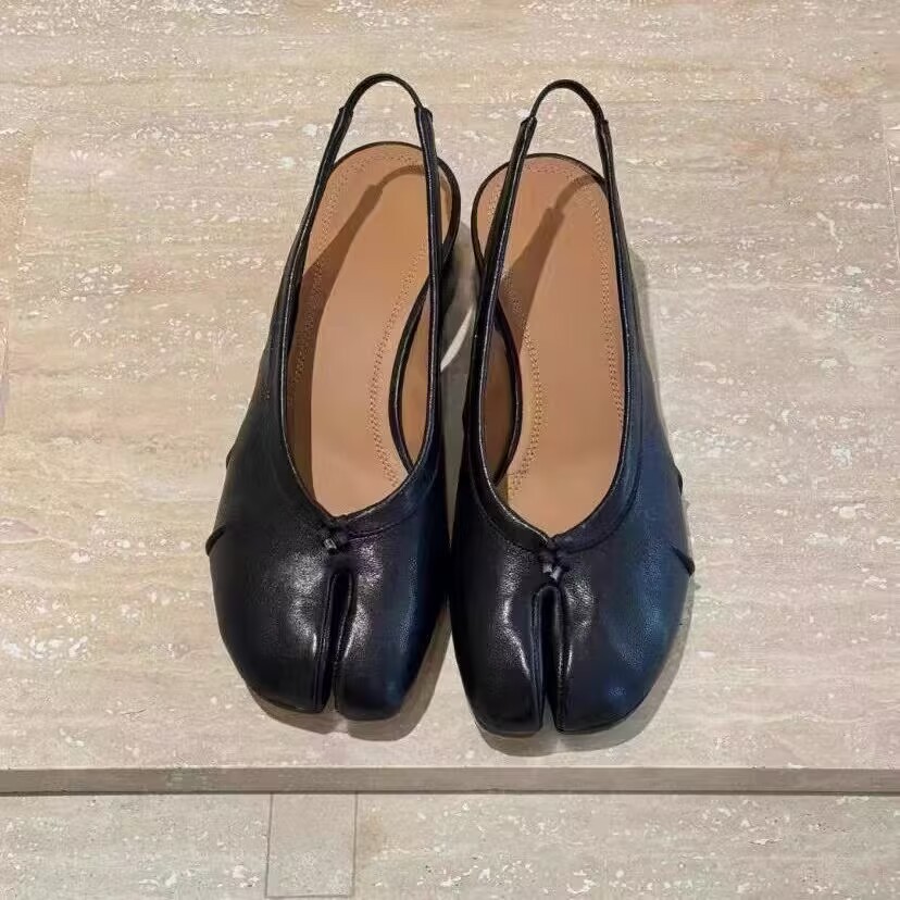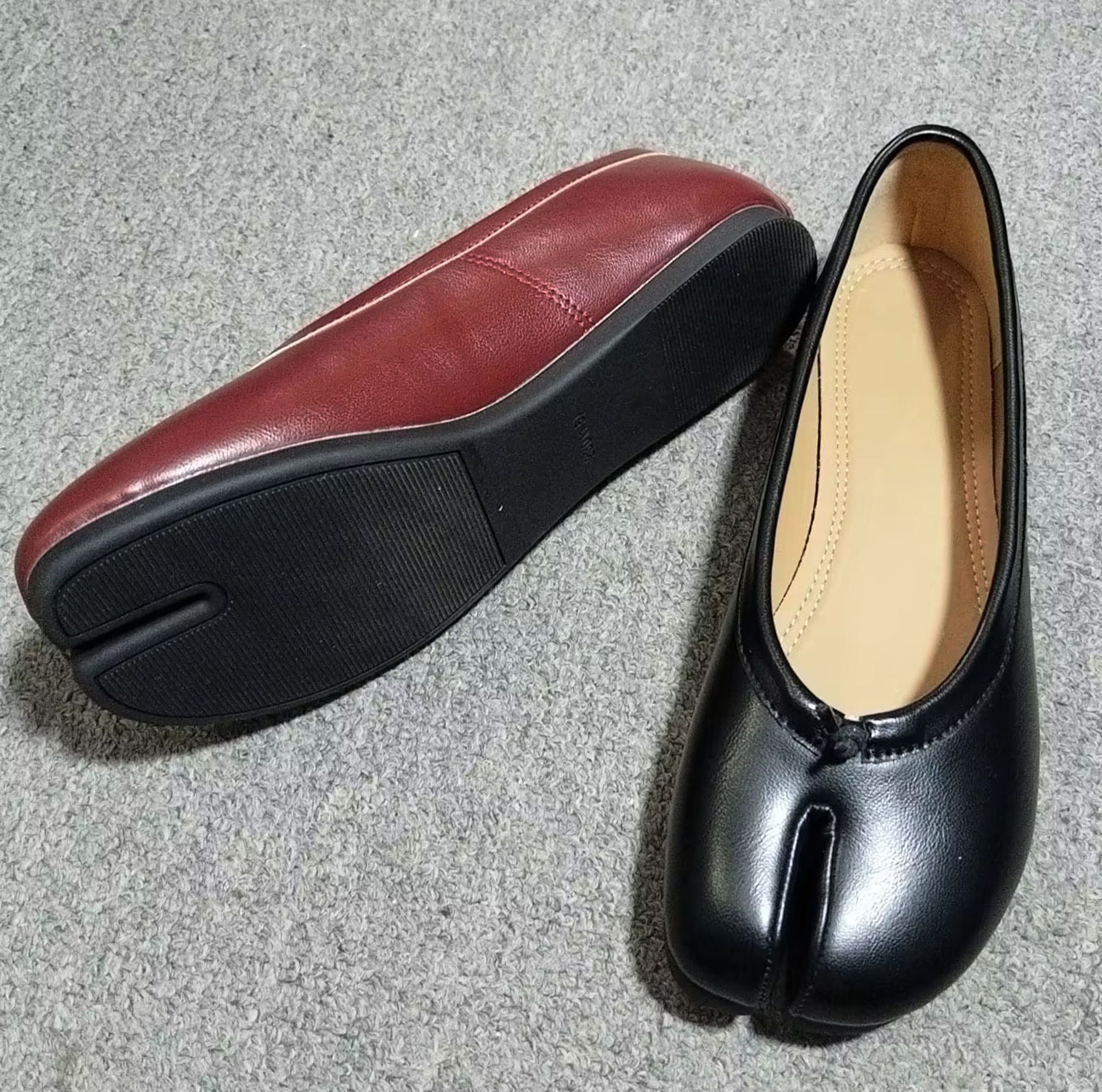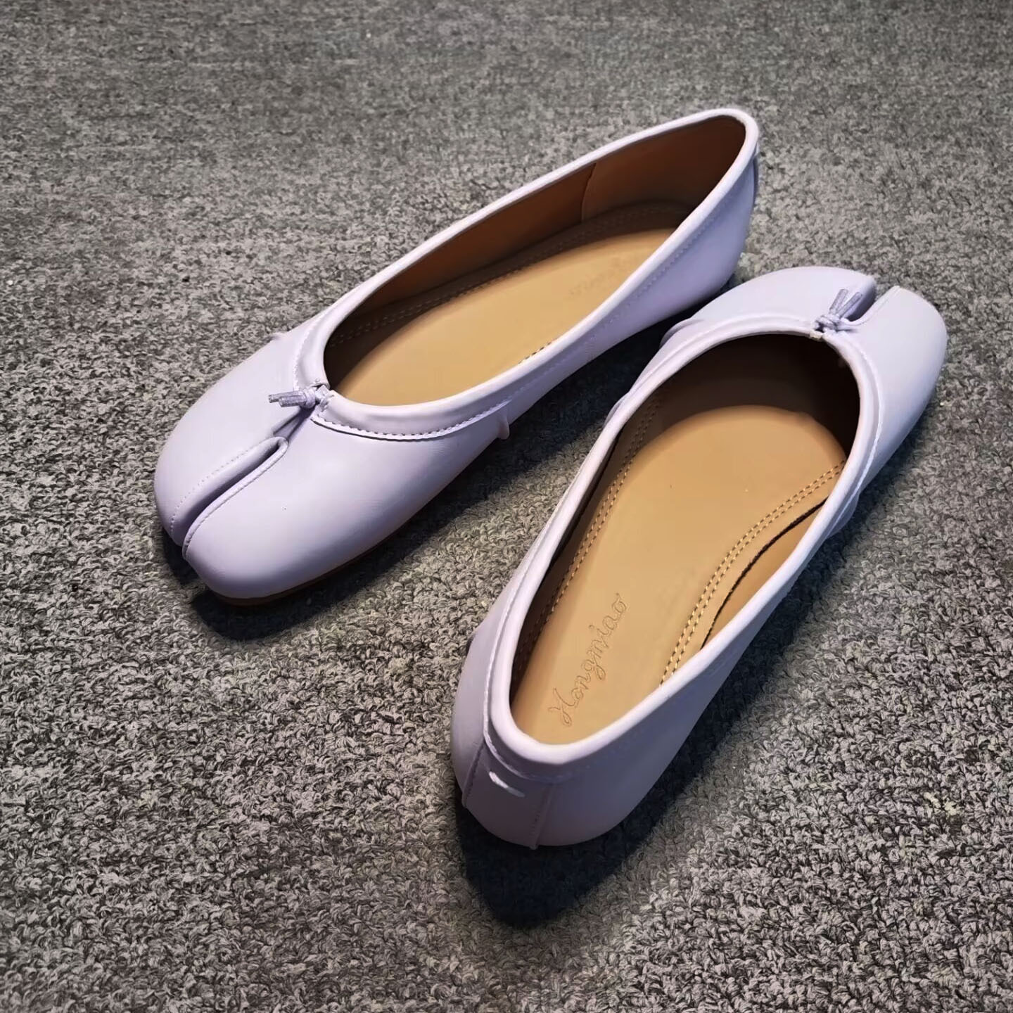 타비 스플릿 발가락 신발 여성 2024 새로운 틈새 주름 플랫 발레 신발 얕은 입 1 페달 신발스토어 가기