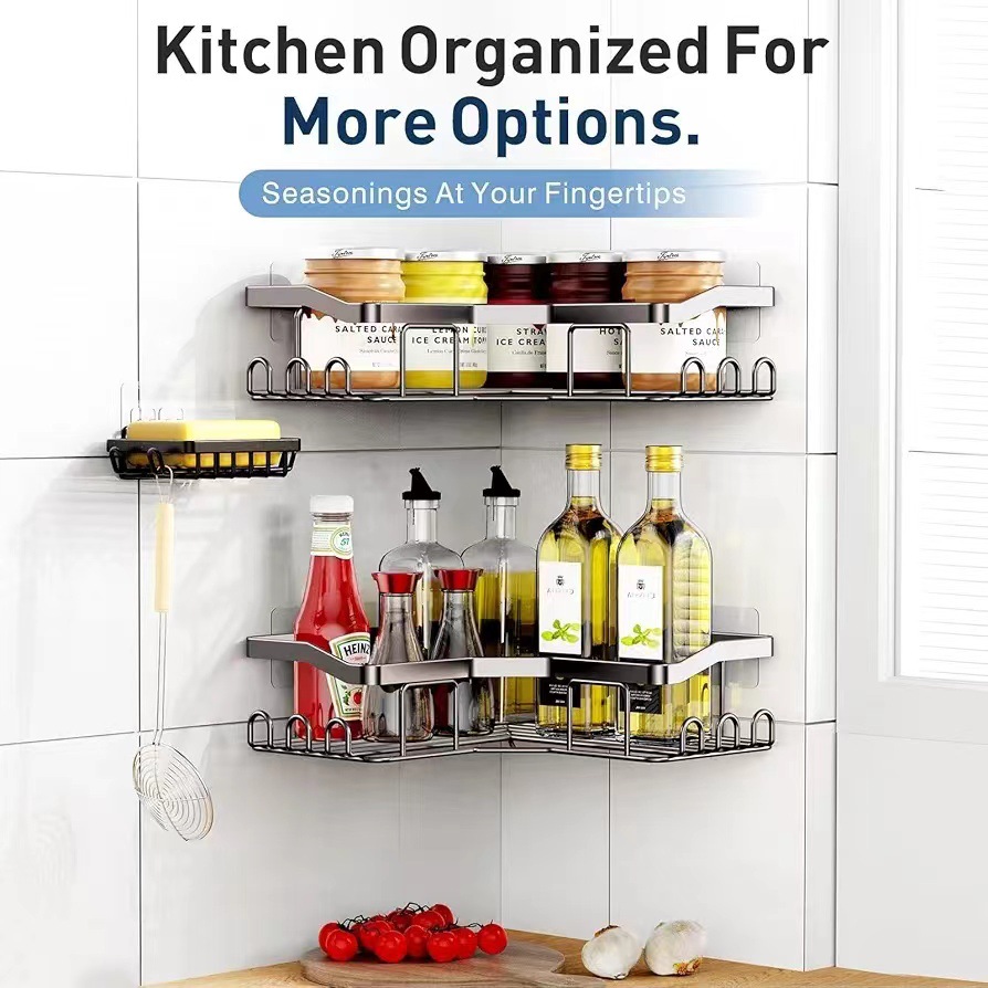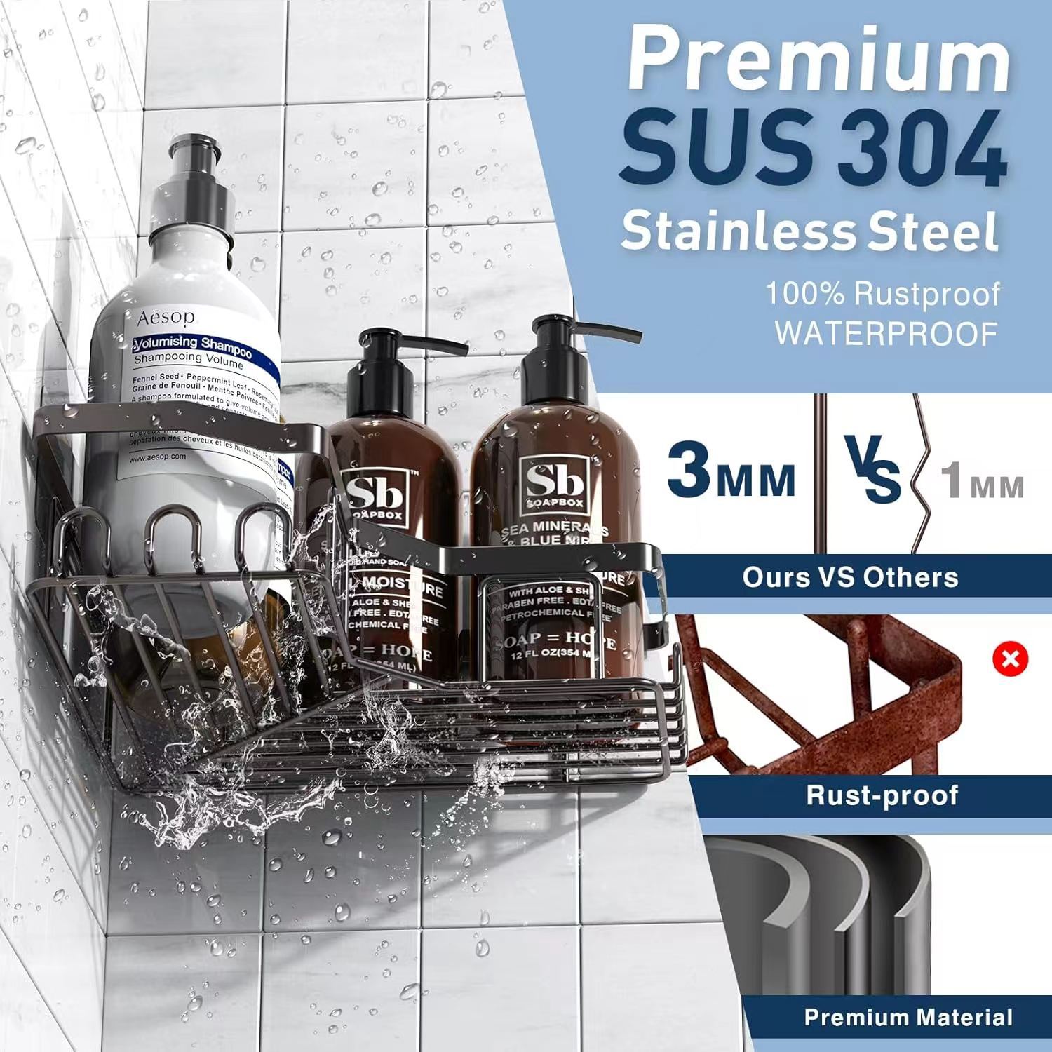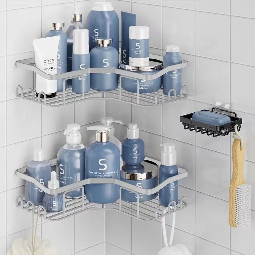국경 간 욕실 스테인레스 스틸 삼각형 랙 3 피스 화장실 비 천공 코너 보관 랙 욕실 세트