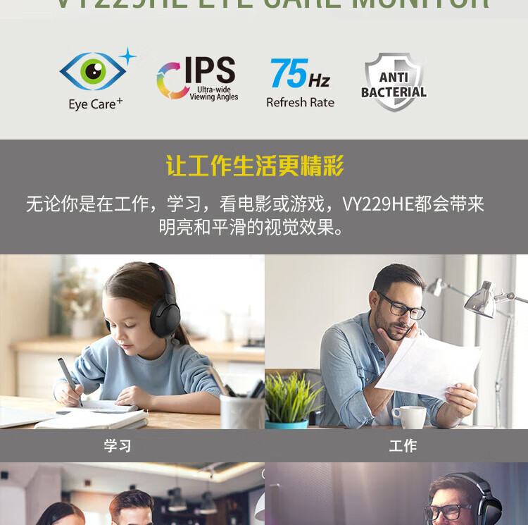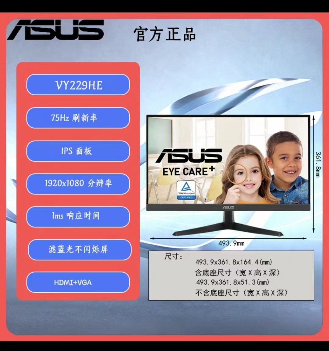 VY229HE 21.5 인치 홈 오피스 엔터테인먼트 오디오 및 비디오 IPS LCD 모니터 컴퓨터 모니터스토어 가기