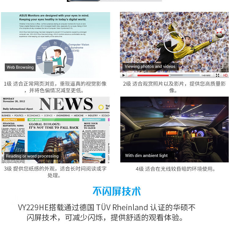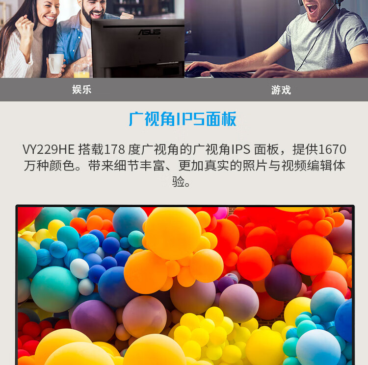 VY229HE 21.5 인치 홈 오피스 엔터테인먼트 오디오 및 비디오 IPS LCD 모니터 컴퓨터 모니터