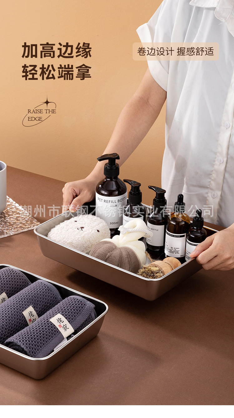 도매 호텔 스테인레스 스틸 타월 트레이 스테인레스 스틸 저장 트레이 두꺼운 스테인레스 스틸 스퀘어 트레이 티라미수 스퀘어 트레이