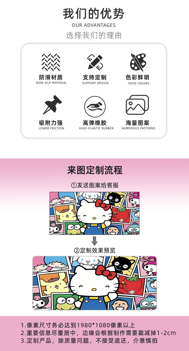 산리오 마우스 패드 슈퍼 큰 더러운 저항하는 소녀 귀여운 만화 애니메이션 컴퓨터 테이블 패드 쿨로 미 애니메이션 키보드 패드