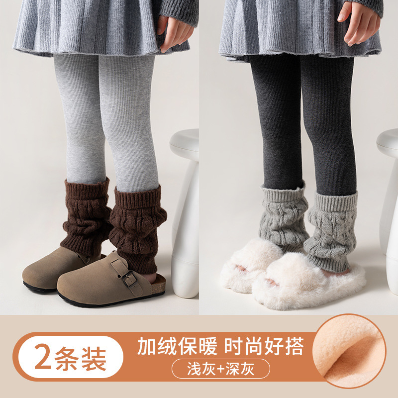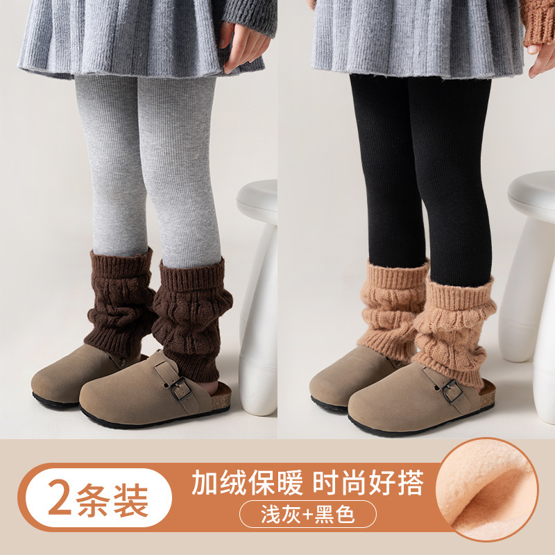 어린이 자른 바지 겨울 두꺼운 기모 소녀 따뜻한 베개 양말 바느질 한국 유행 외모 레깅스