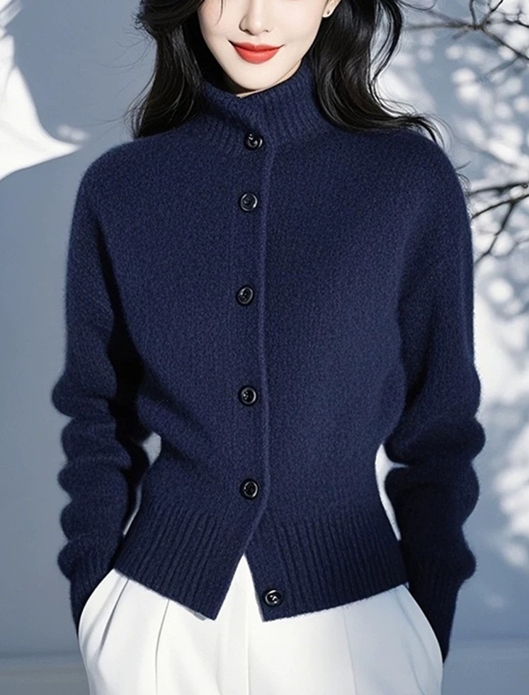 패션 하이 엔드 센스 아름다운 블루 긴팔 스웨터 니트 카디건 여성 가을과 겨울 서양 스타일 잘 생긴 통근 트렌디 셔츠