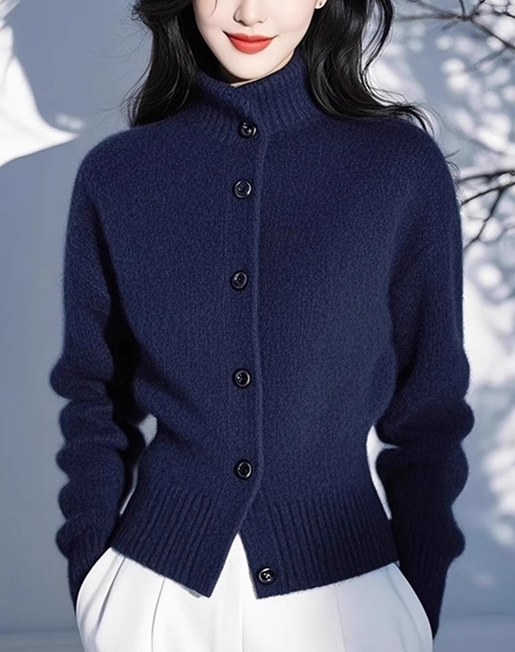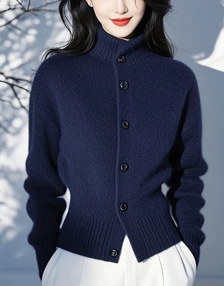 패션 하이 엔드 센스 아름다운 블루 긴팔 스웨터 니트 카디건 여성 가을과 겨울 서양 스타일 잘 생긴 통근 트렌디 셔츠스토어 가기