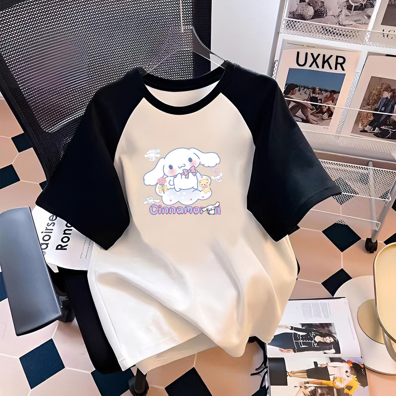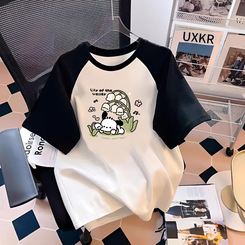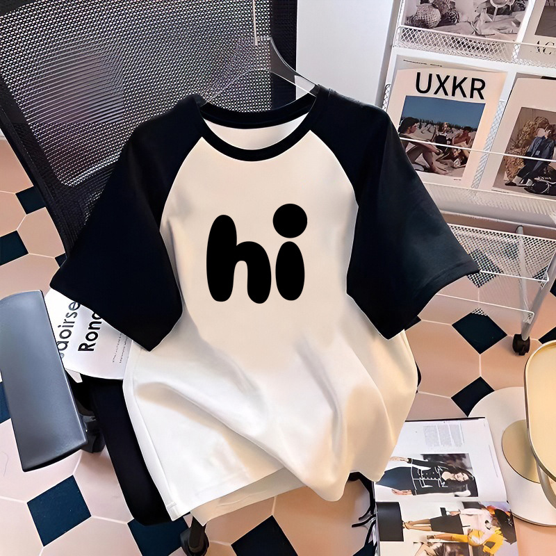 남성과 여성의 아동복 흑백 스티칭 퓨어 코튼 반팔 티셔츠 여름 느슨한 서양식 만화 인쇄 탑 트렌디스토어 가기