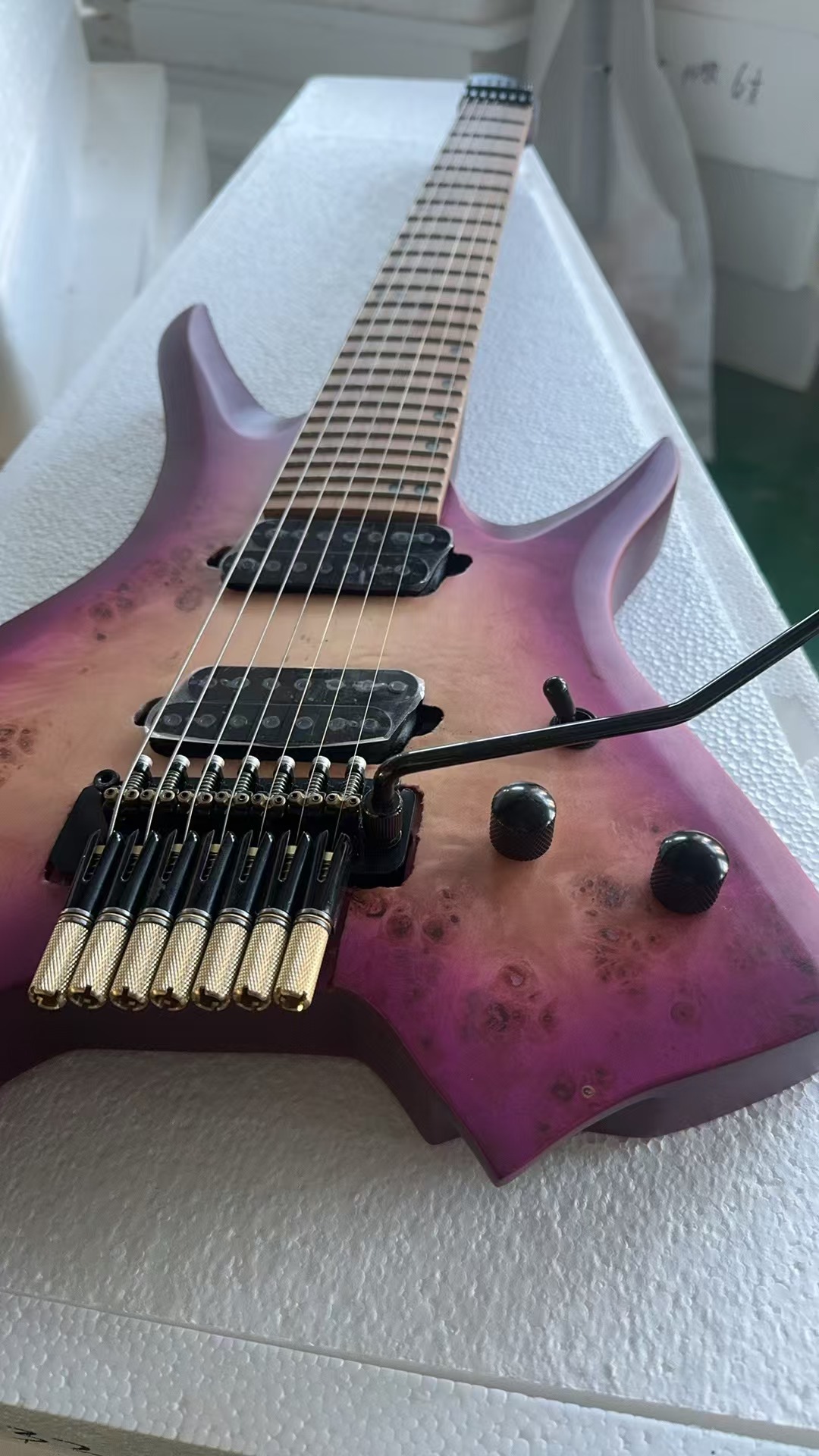 국경 핫 세일 7 현 보라색 헤드 밴드 발광 사이드 일렉트릭 기타 도매 및 소매 공장 직접 판매 하이 퀄리티스토어 가기
