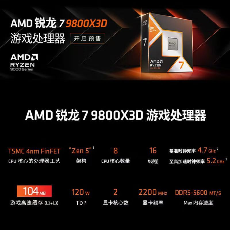 (흩어져있는 영화) AMD Ruilong 7 R7 9800X3D 8 코어 16 라인 새로운 CPU 프로세서스토어 가기