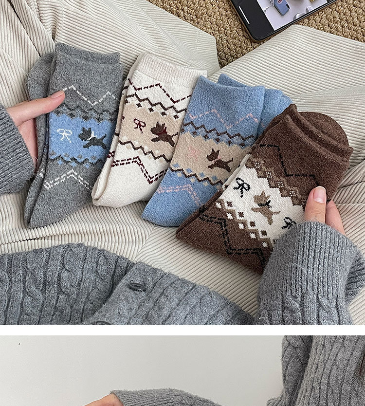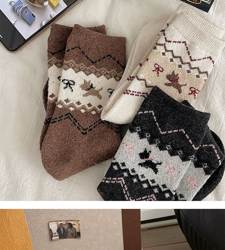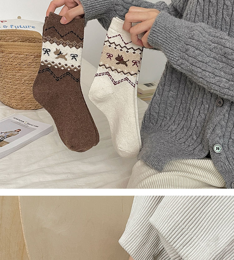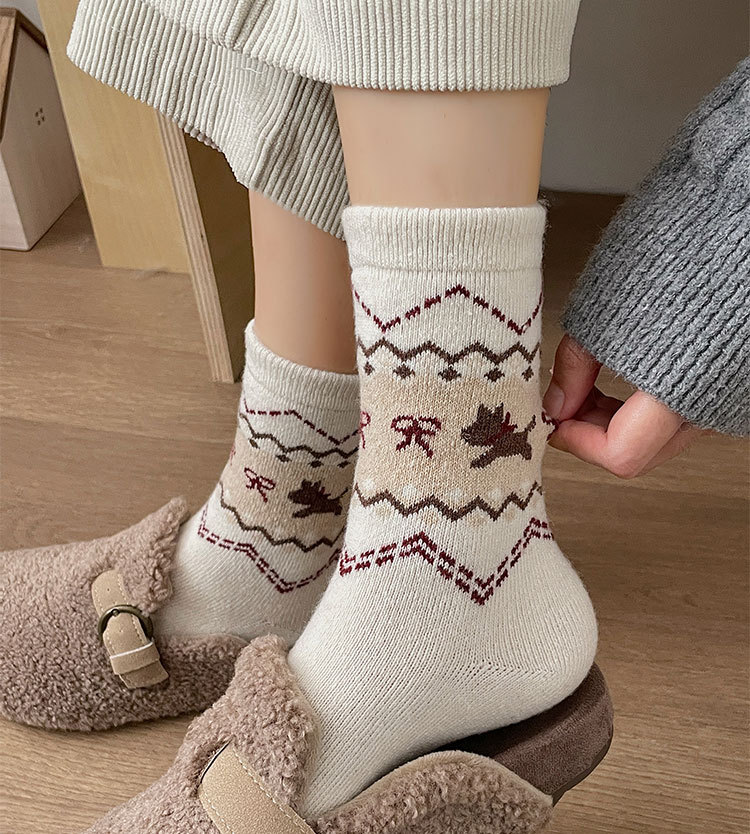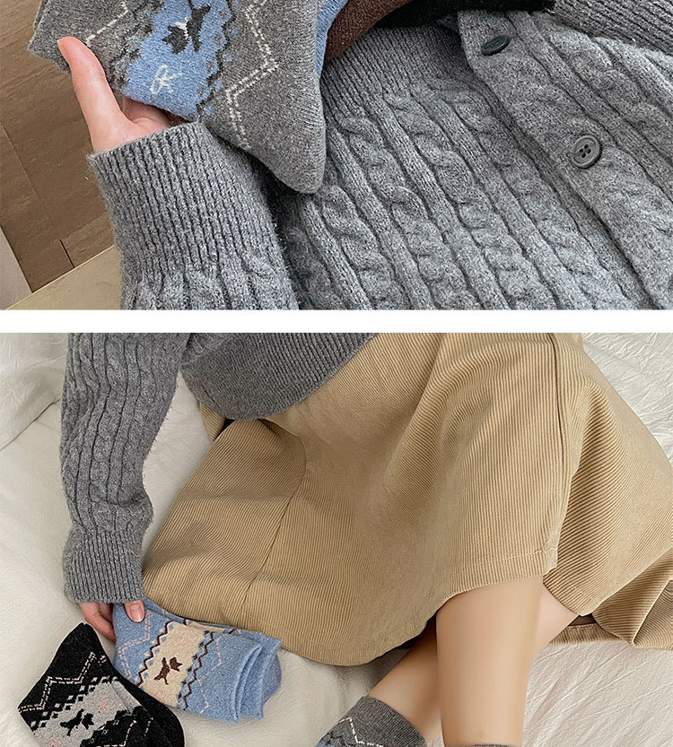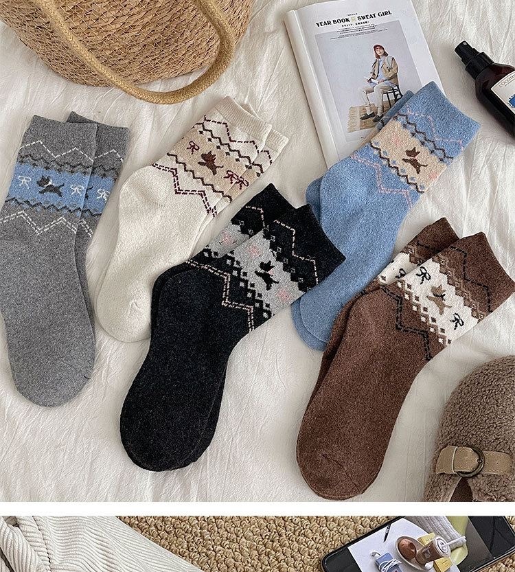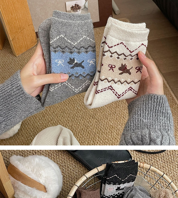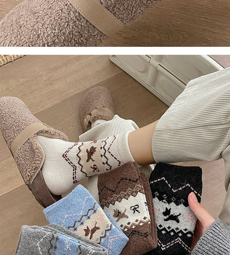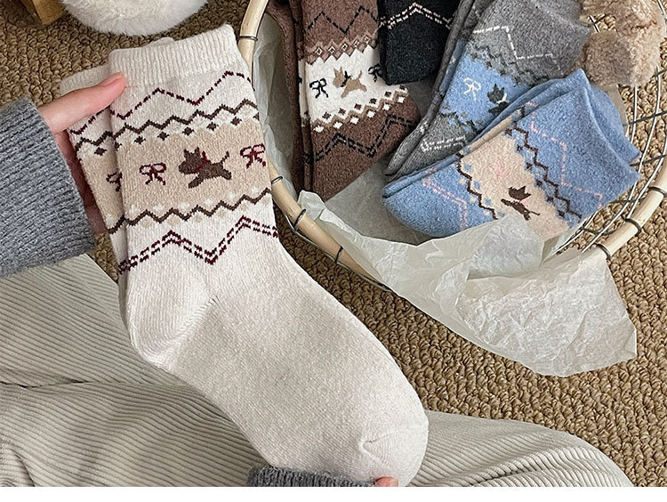 어린이를위한 울 양말 가을과 겨울 빈티지 페어 섬 강아지 양말은 두꺼운 따뜻한 일본 귀여운 만화 스타킹