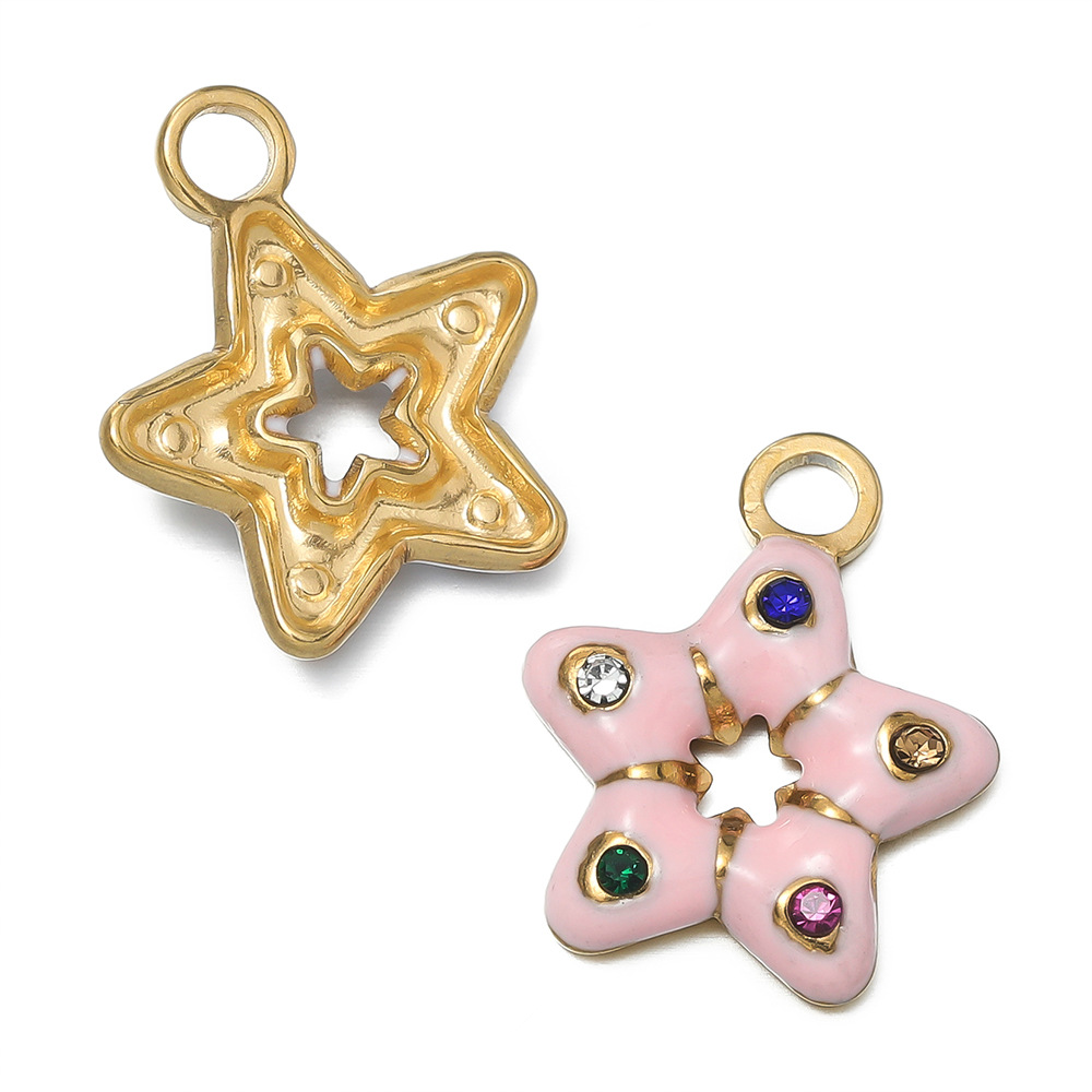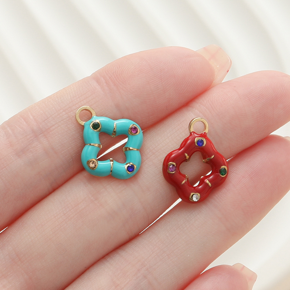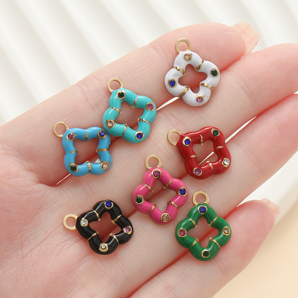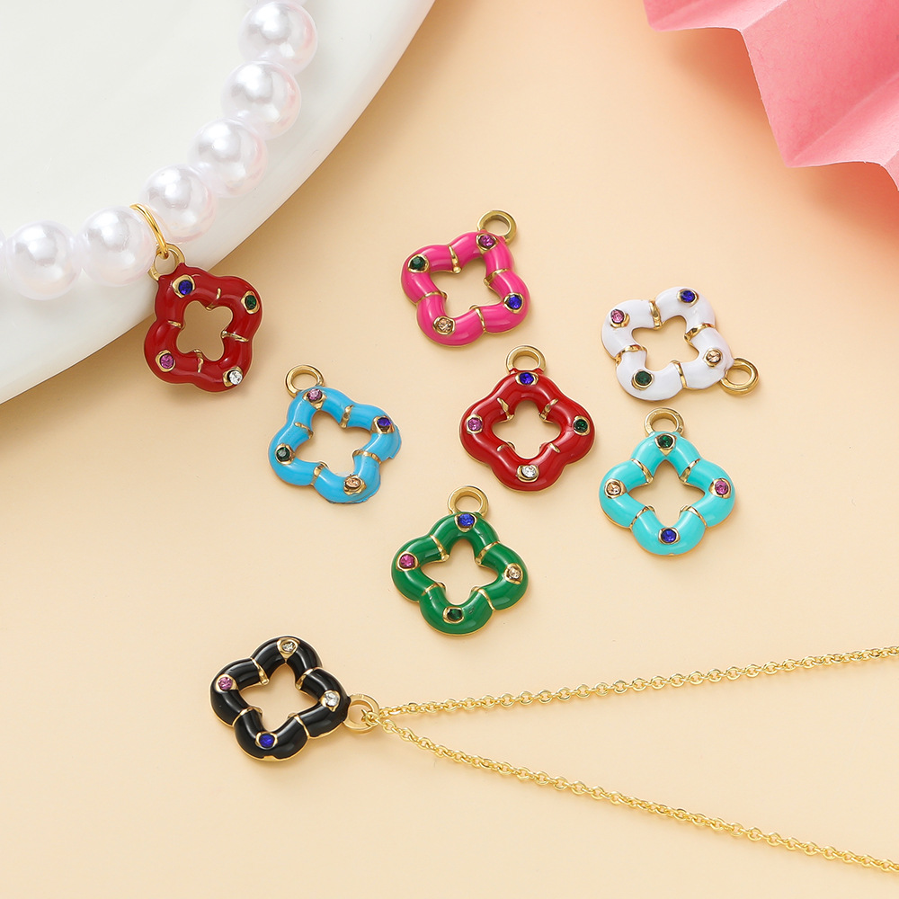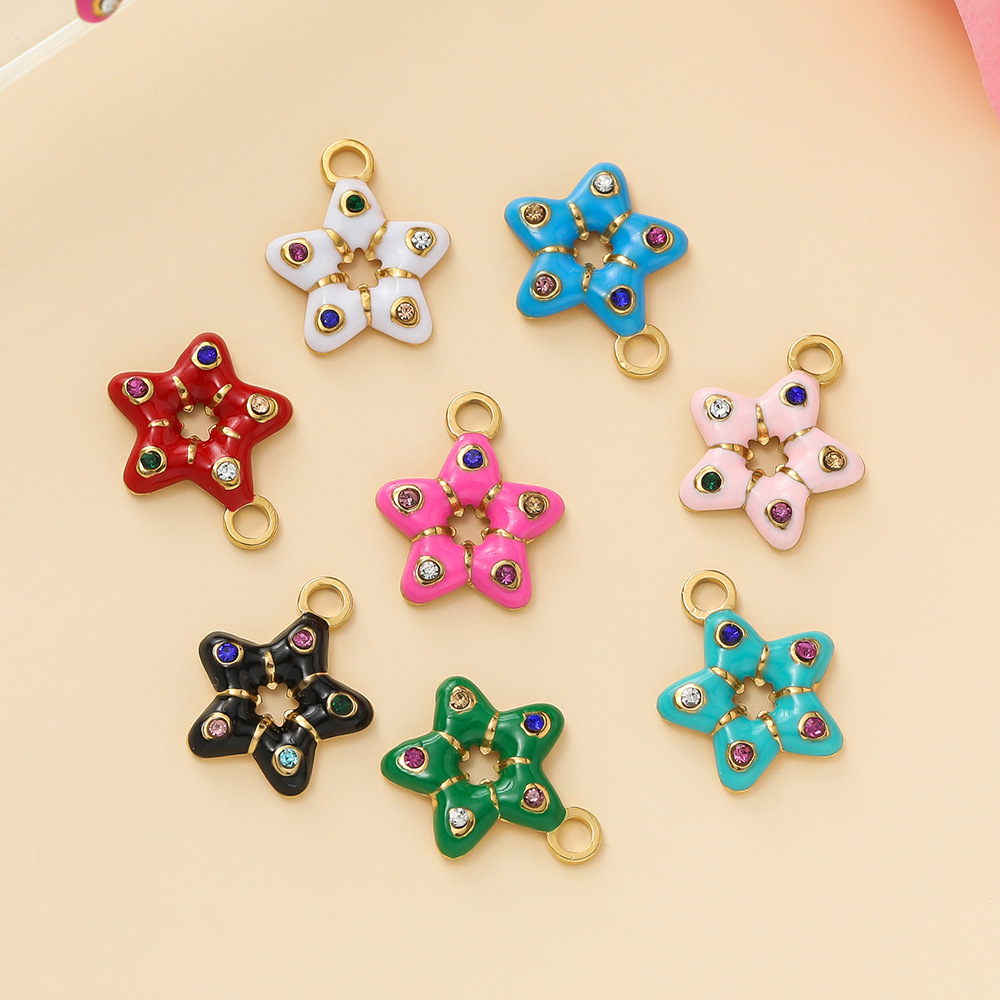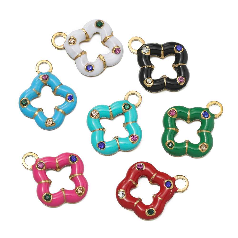 스테인레스 스틸 오일 드롭 컬러 다이아몬드 4 잎 클로버 다섯개 별 러브 이어 드롭 액세서리 diy 팔찌 목걸이 쥬얼리 도매