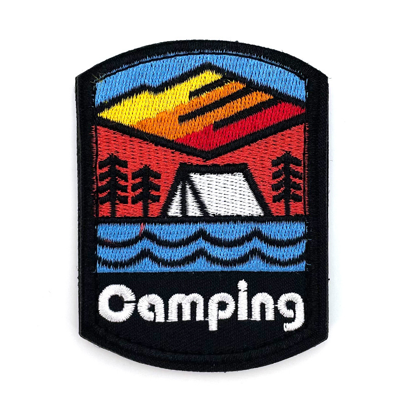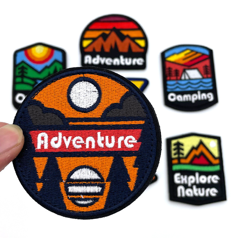 국경 간 야외 등산 의류 자수 천 스티커 산 풍경 시리즈 벨크로 텐트 캠핑 자수 천 스티커스토어 가기