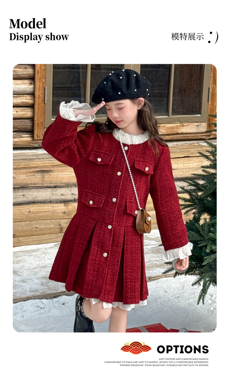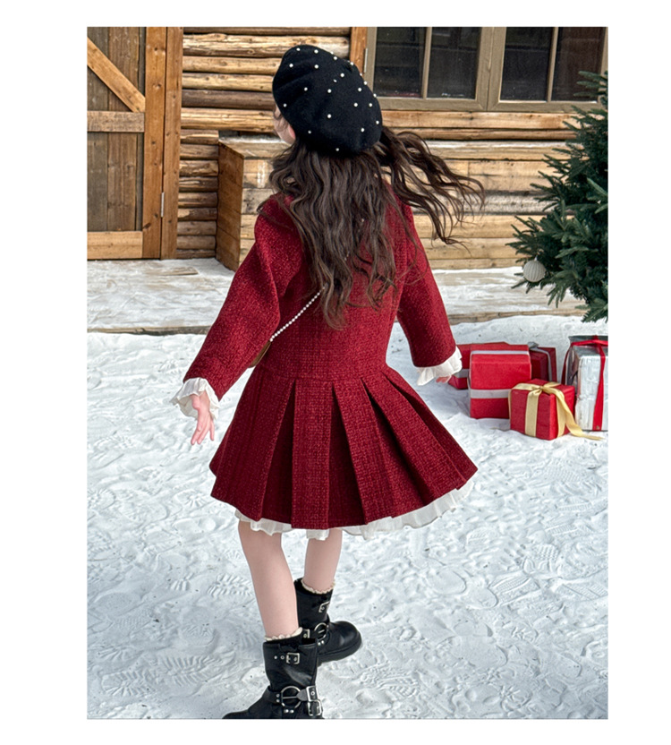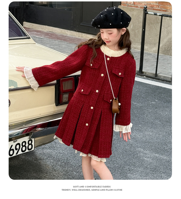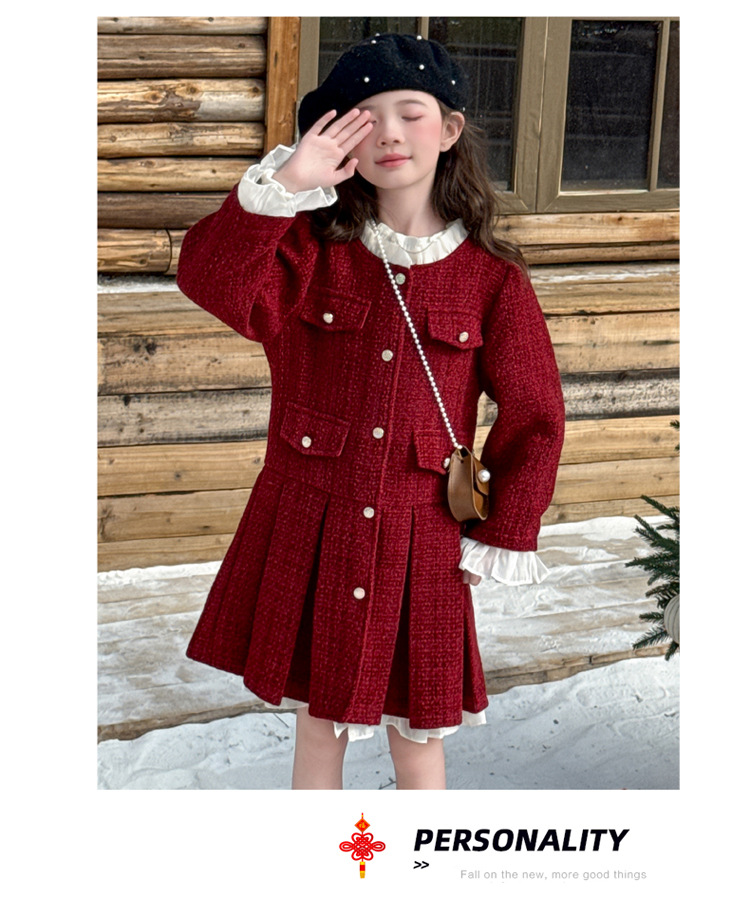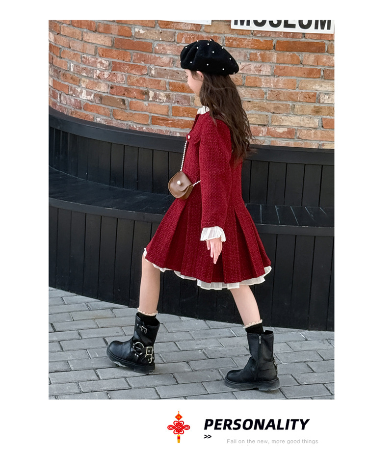 여자 원피스 겨울 신년 옷 서양식 퀼트 어린이 샤넬 스타일 소녀 신년 옷 주름 치마스토어 가기