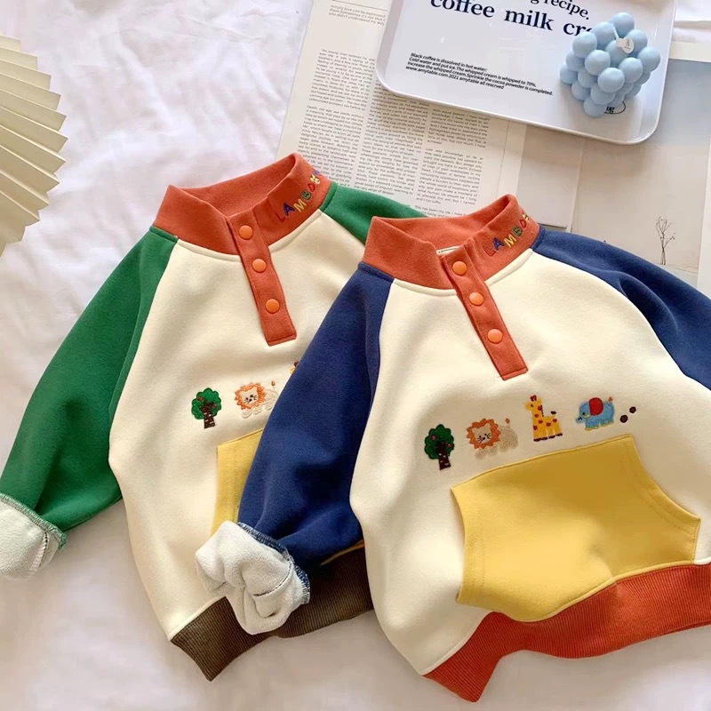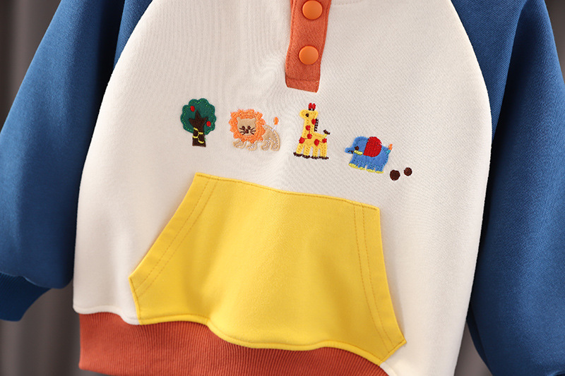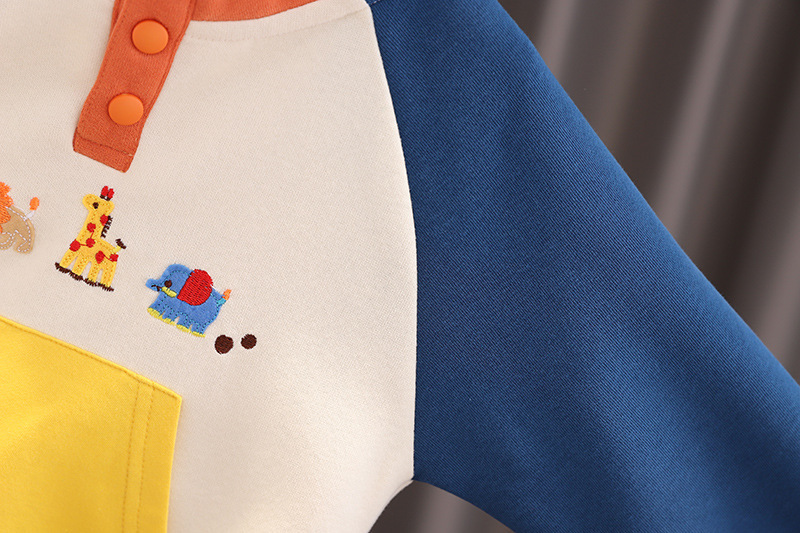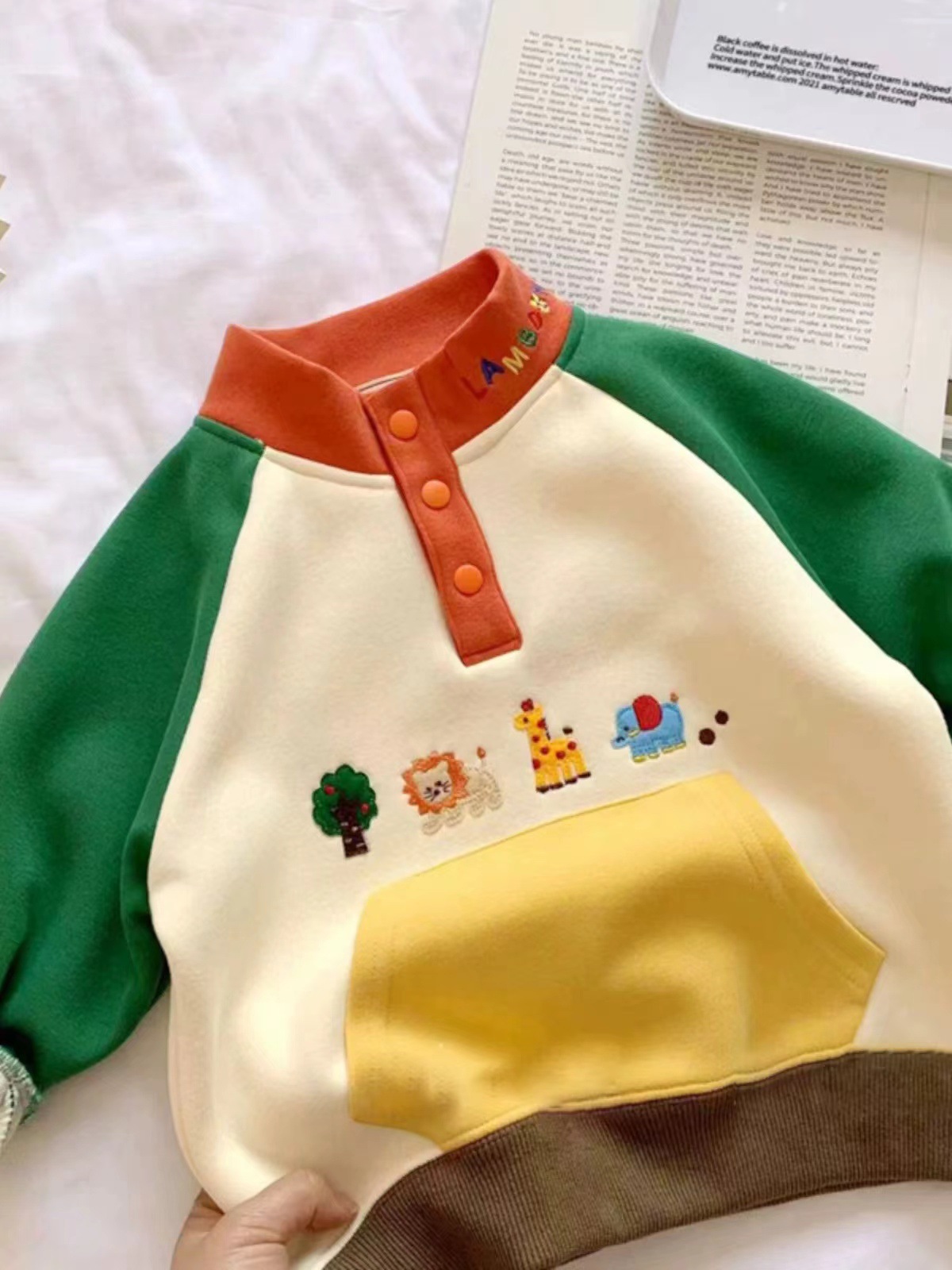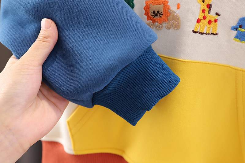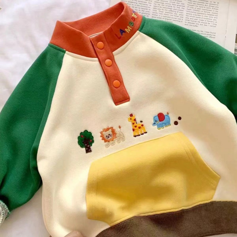 국경 간 아동복 어린이 봄 스웨터 새로운 세미 하이 크루 넥 베이비 컬러 매칭 만화 봄 코트 소년 봄과 가을스토어 가기