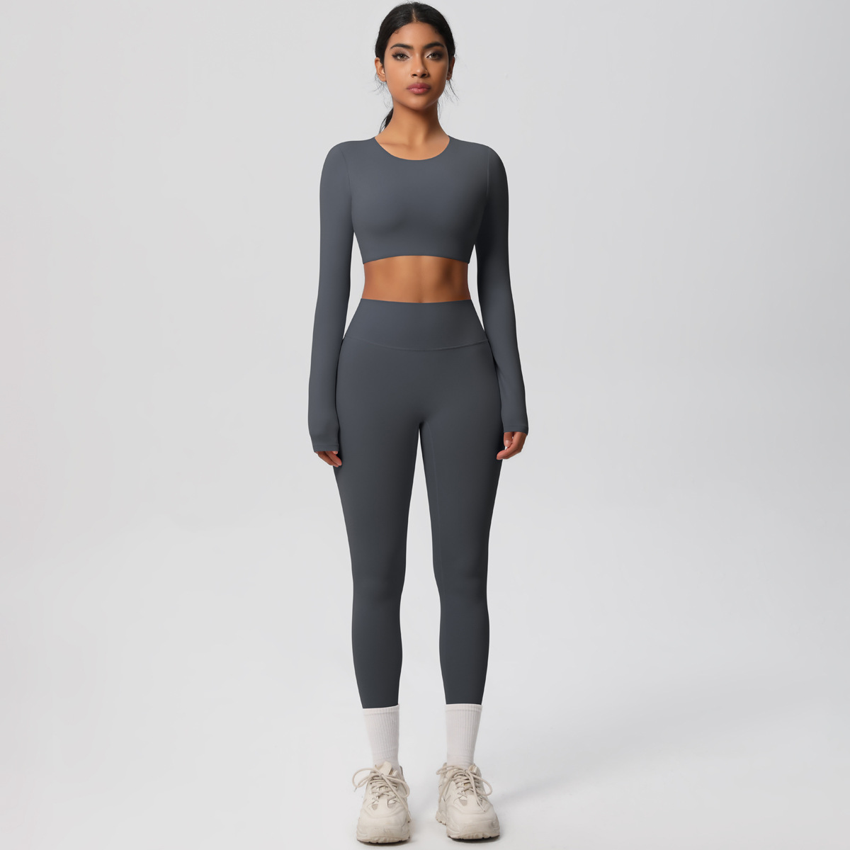 국경 간 유럽과 미국 새로운 샌딩 타이트 피트니스 긴 소매 바지 세트 러닝 트레이닝 요가 세트 투피스 세트스토어 가기