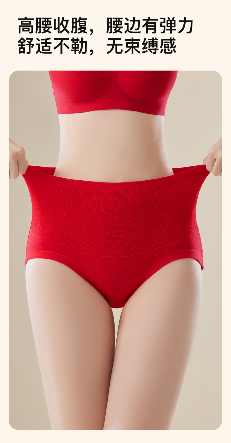2025 년 브닝 니언 레드 언더웨어 여성 코튼 하이 웨이스트 힙 리프팅 복부 노크 여성 플러스 사이즈 코튼 트라이앵글 반바지