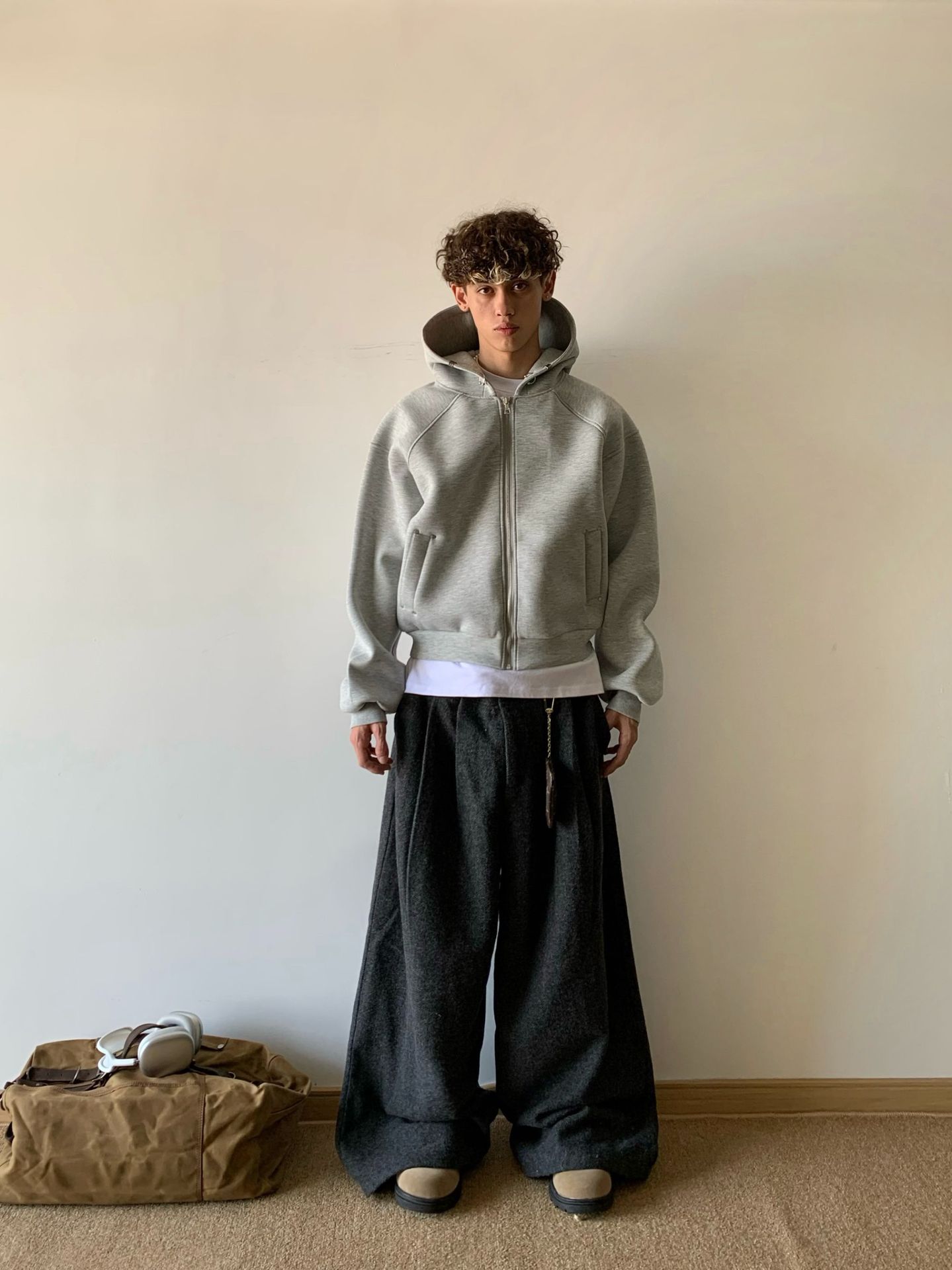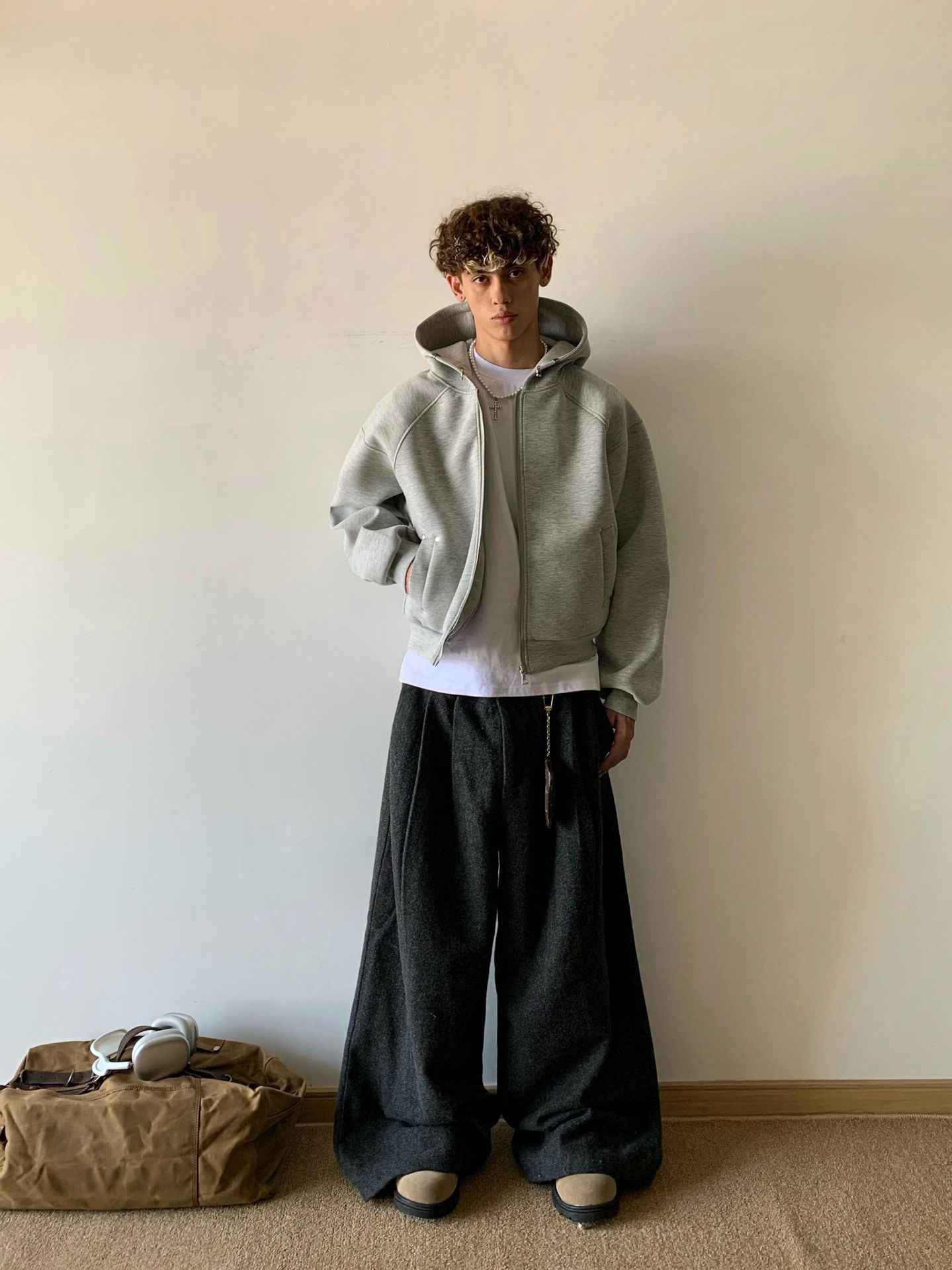그레이 헤비 후드 지퍼 스웨터 남성 봄과 가을 미국 스타일 하이 스트리트 트렌디 브랜드 루즈 탑 재킷 카디건 커플스토어 가기