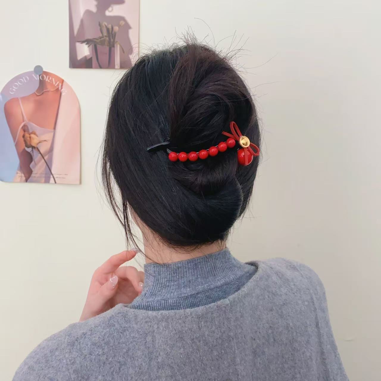 활 라운드 구슬 트위스트 클립 가을과 겨울 헤어 핀 여성의 머리 뒤로 간단한 패션 클립 기질 헤어핀 헤어 액세서리