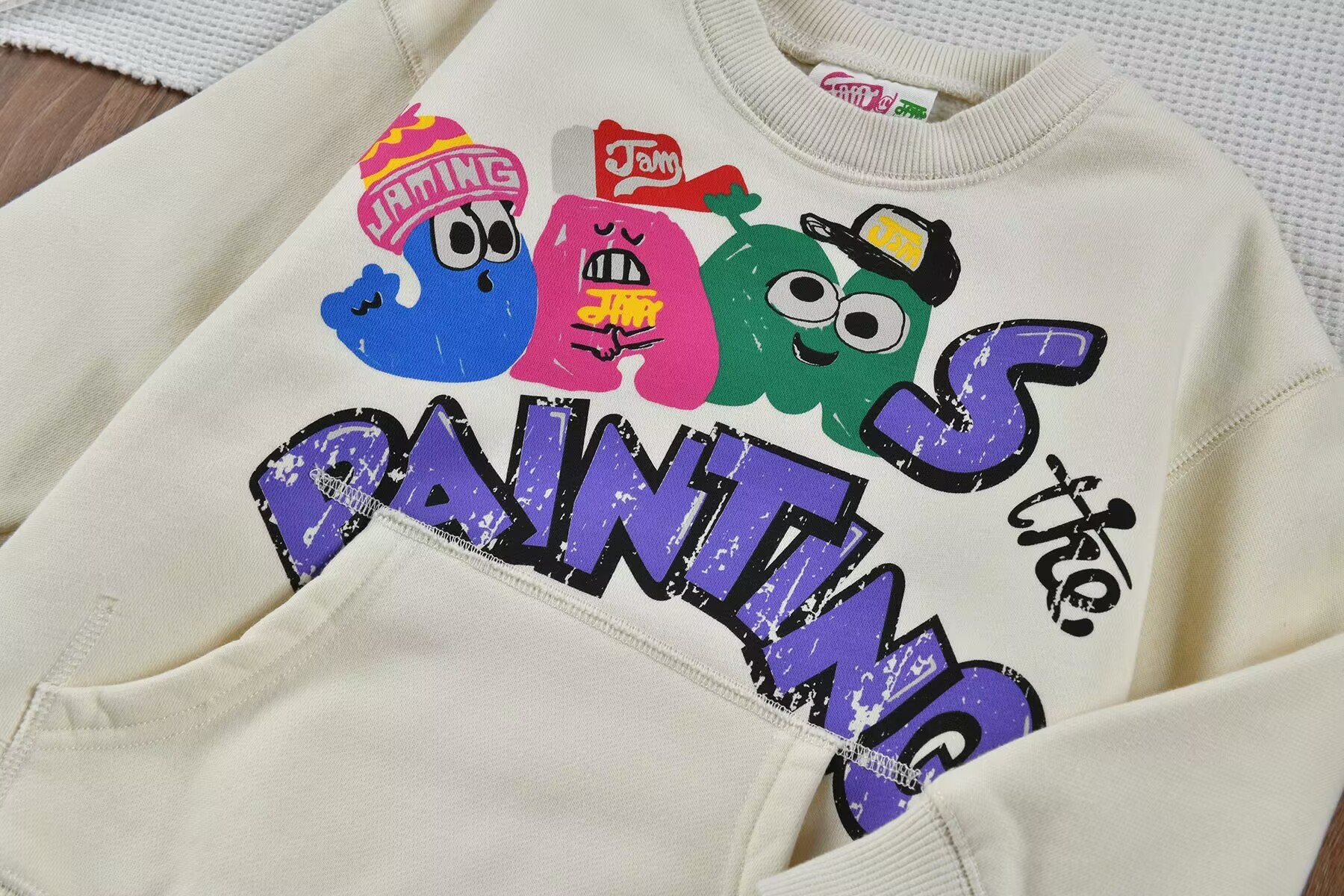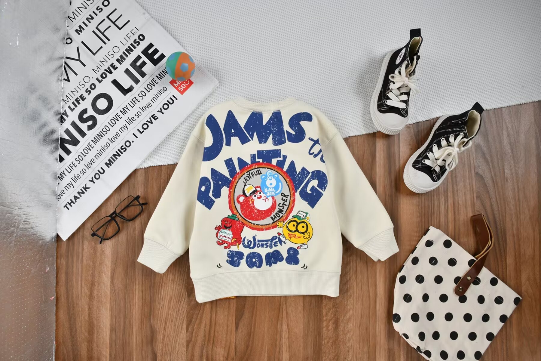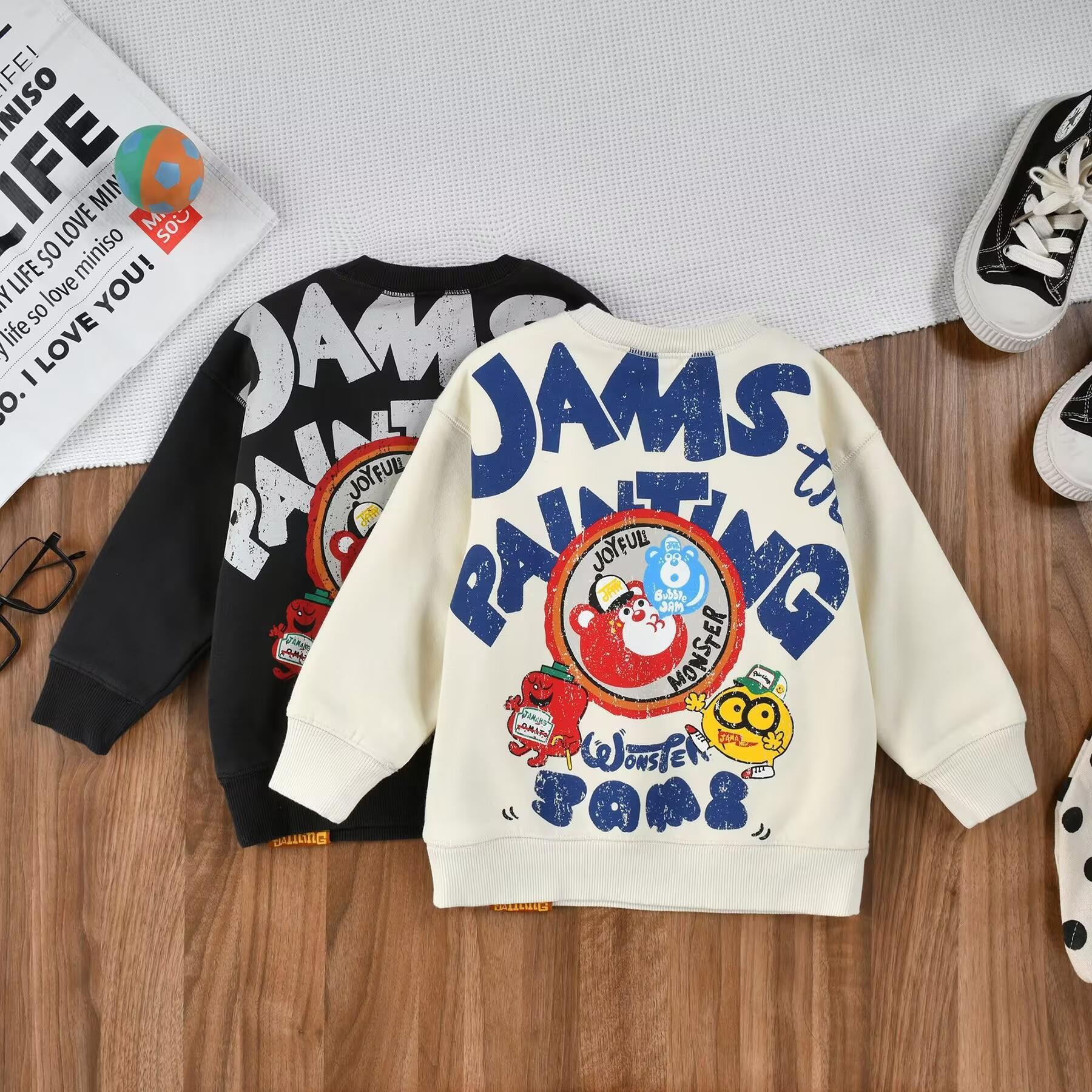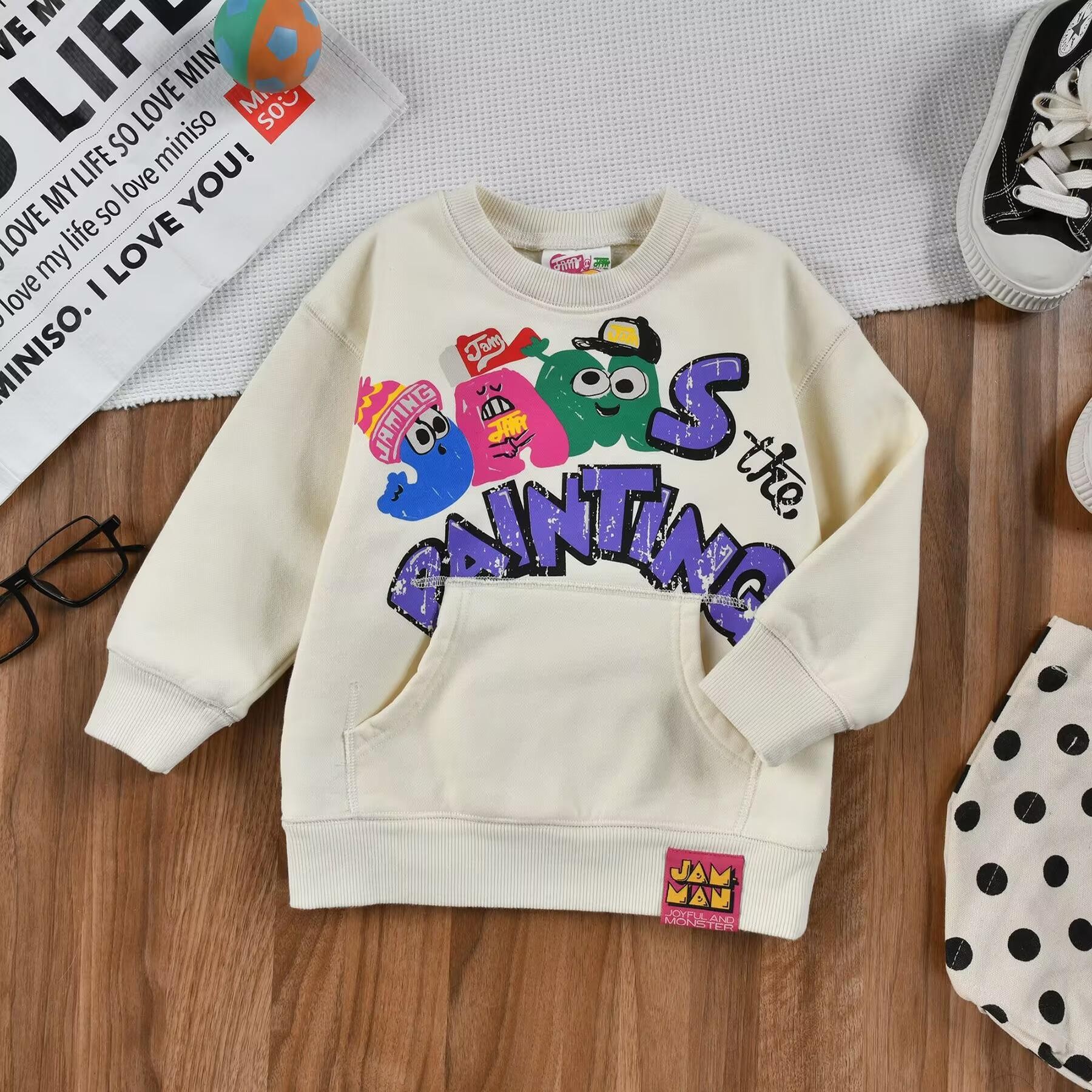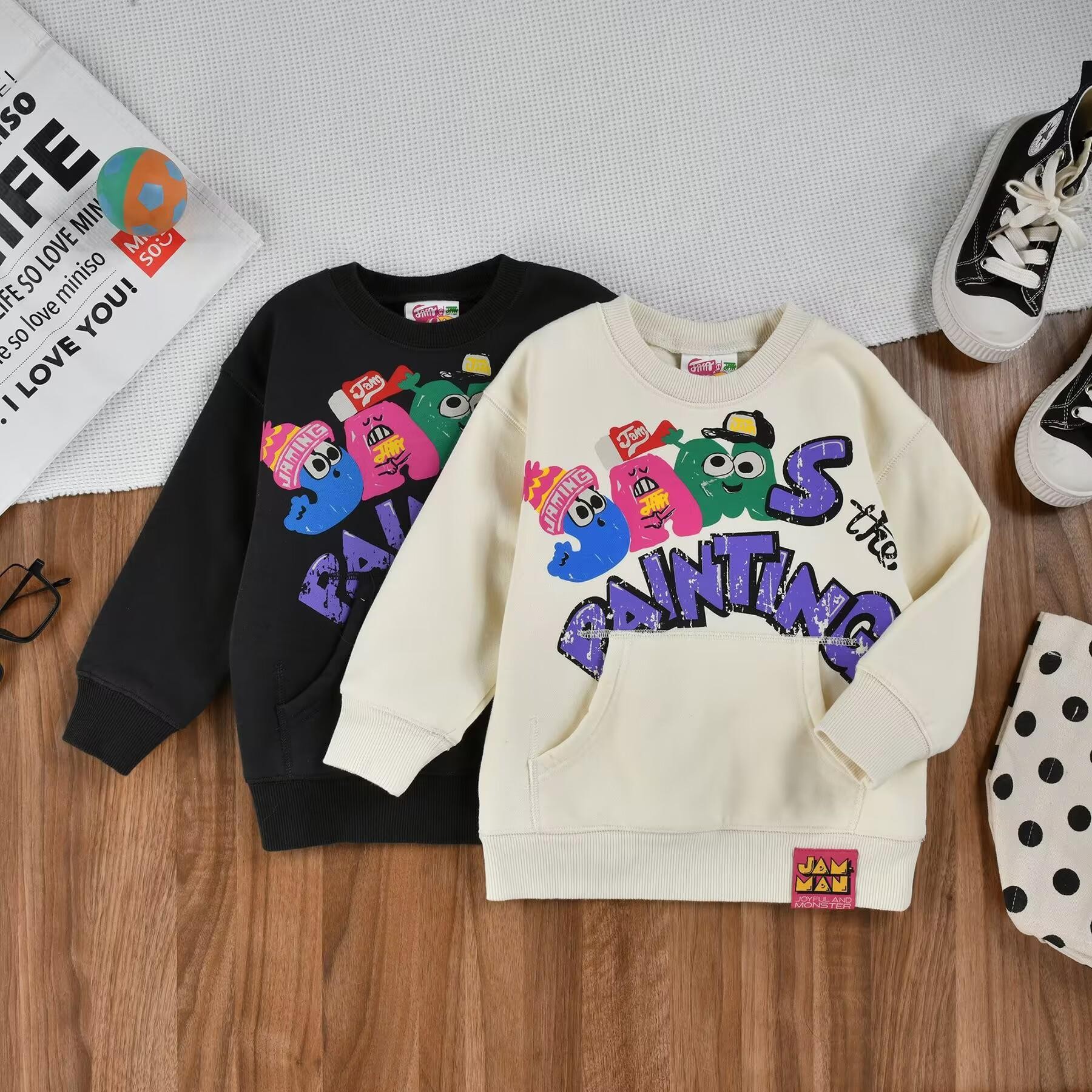 겨울 잼 어린이 착용 일본식 소년과 소녀 둥근 목 기모 긴 소매 스웨터 만화 포켓 어린이 따뜻한 탑스토어 가기