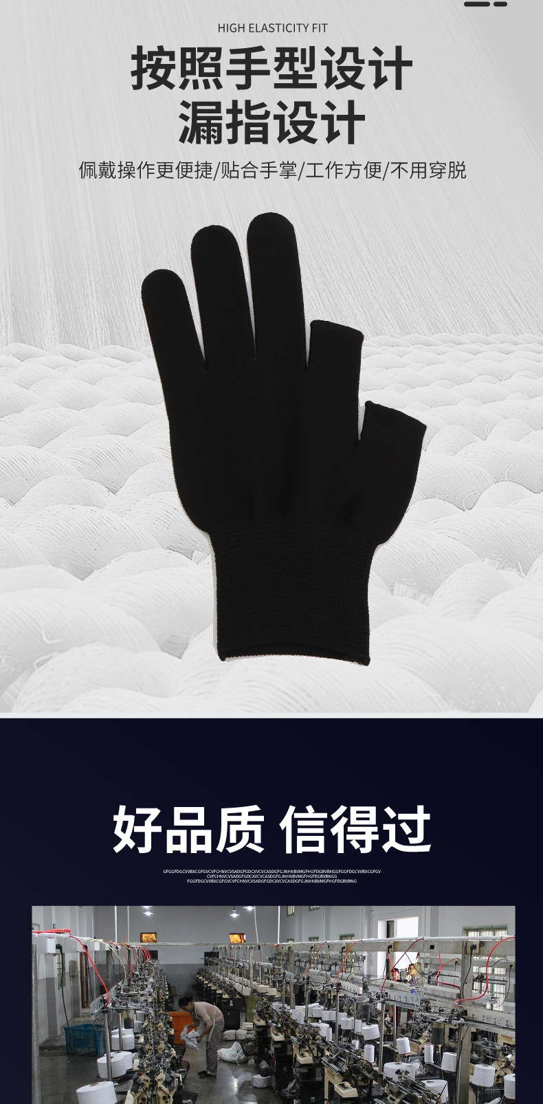 PVC 비드 분배 장갑 미끄럼 방지 내마모성 뜨개질 작업 남성 및 여성 현장 작업 깨진 두 손가락 구슬 장갑스토어 가기