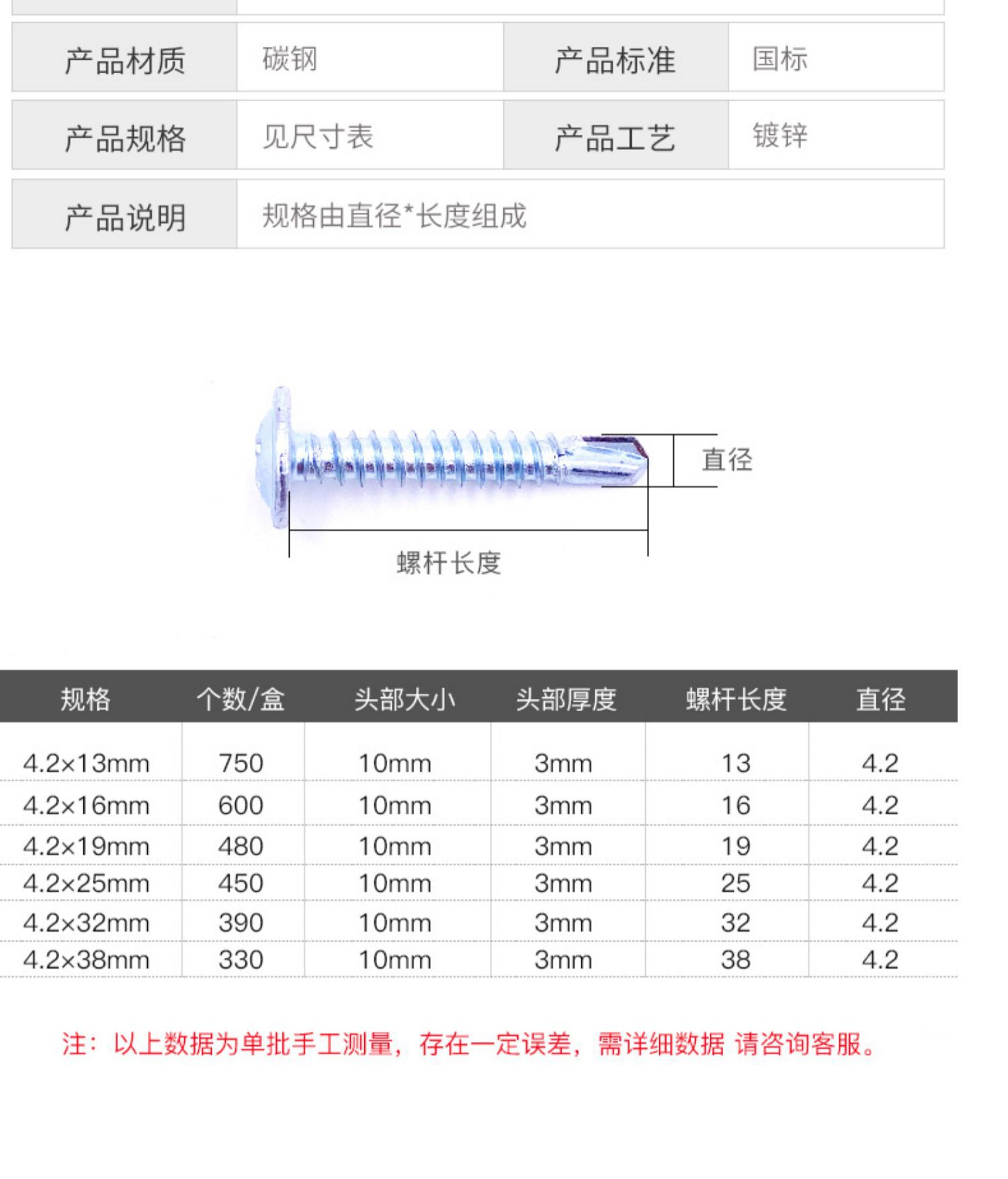 홍팅 대형 플랫 헤드 자체 드릴링 스크류 드릴 테일 와이어 dovetail 네일 M4.2x13 16 19 25 3238스토어 가기