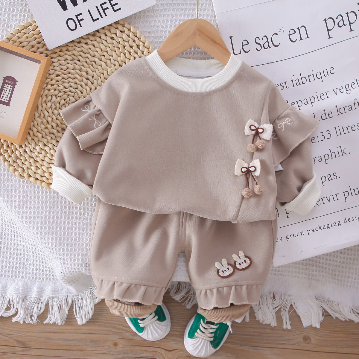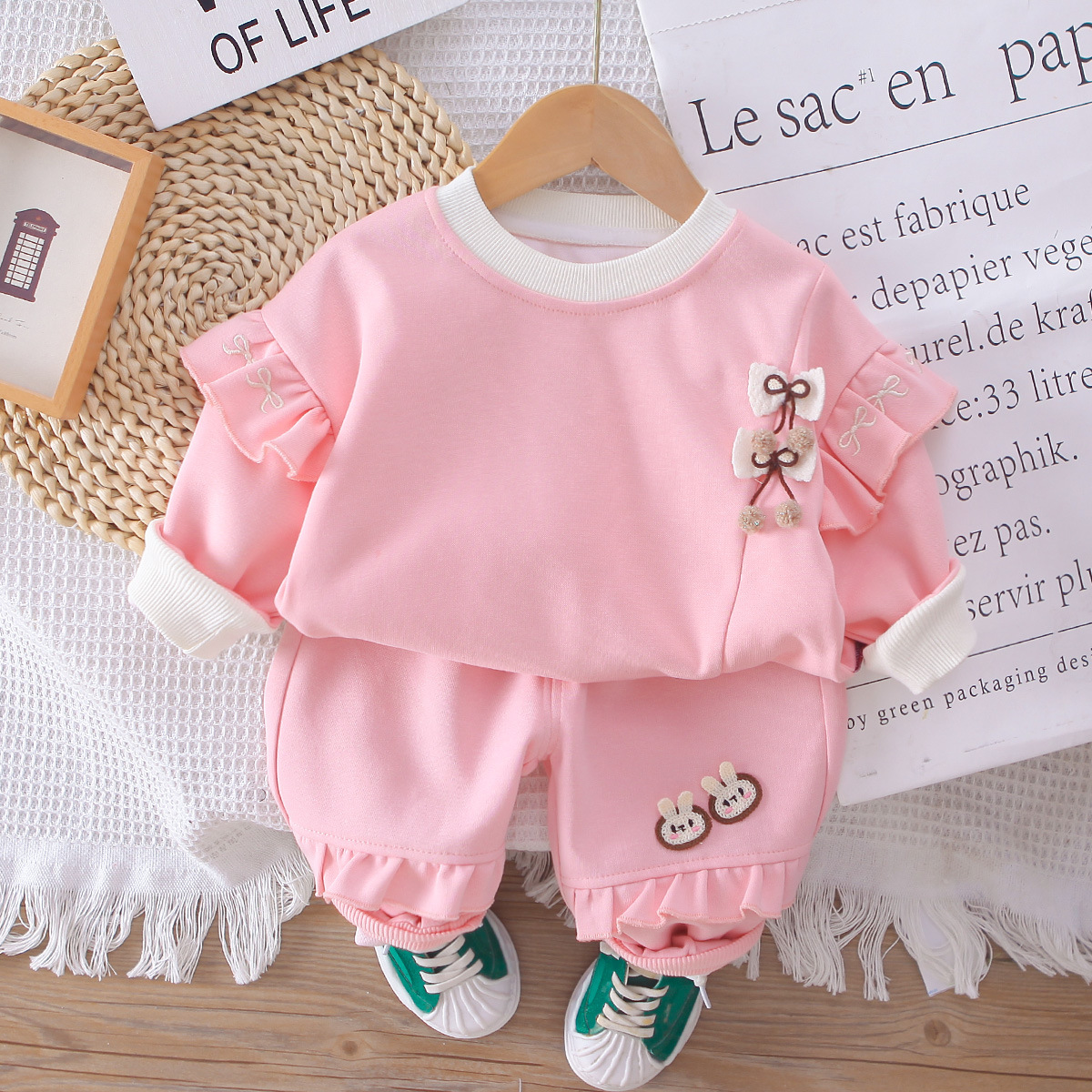 아기 여자 봄 활 땀 세트 새로운 스타일 아기 캐주얼 스포츠 투피스 봄 옷