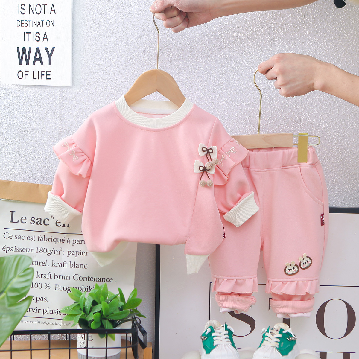 아기 여자 봄 활 땀 세트 새로운 스타일 아기 캐주얼 스포츠 투피스 봄 옷스토어 가기