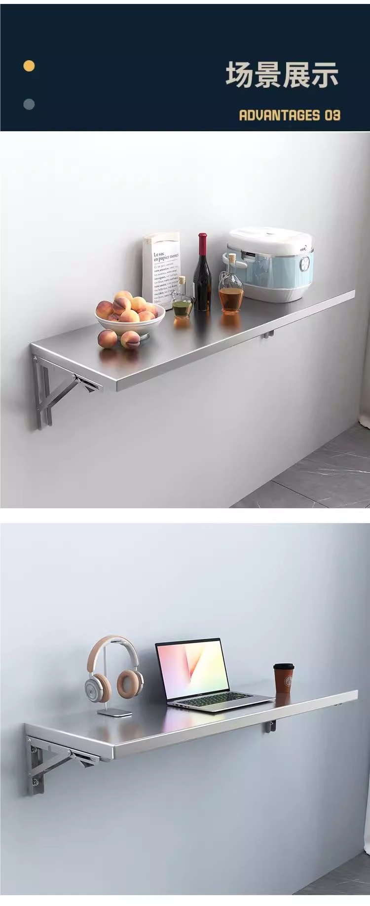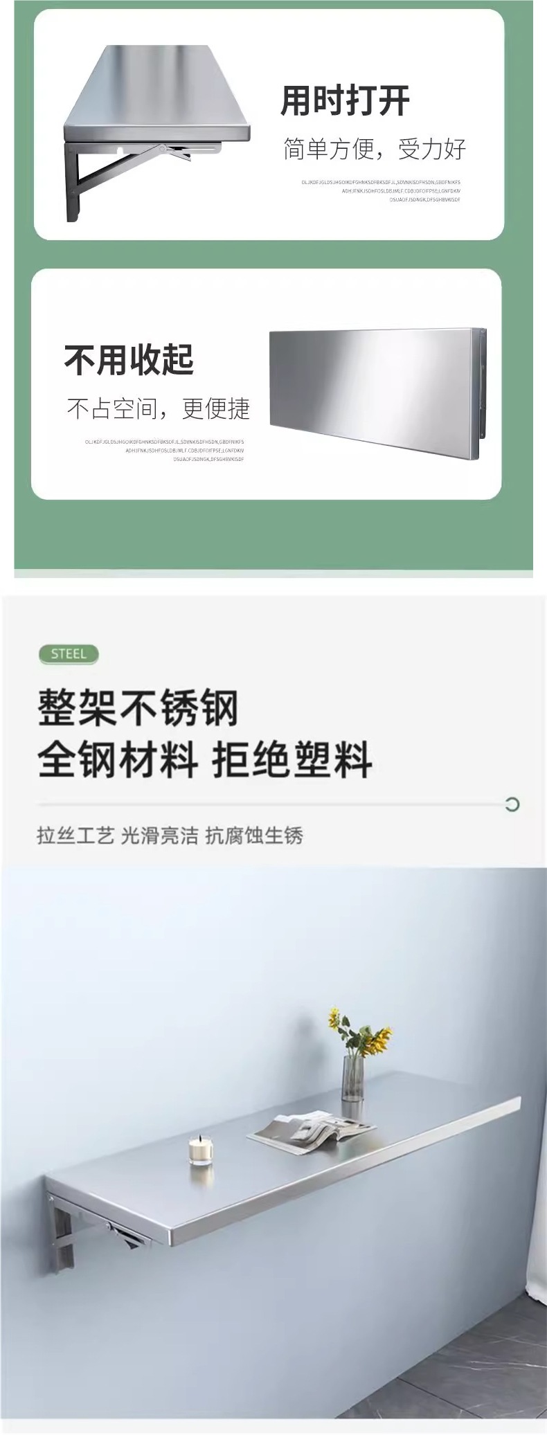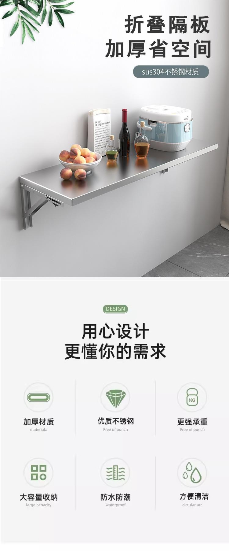 304 스테인레스 스틸 접이식 벽 파티션 브래킷 벽걸이 간단한 저장 벽 장착 주방 벽 보관 랙