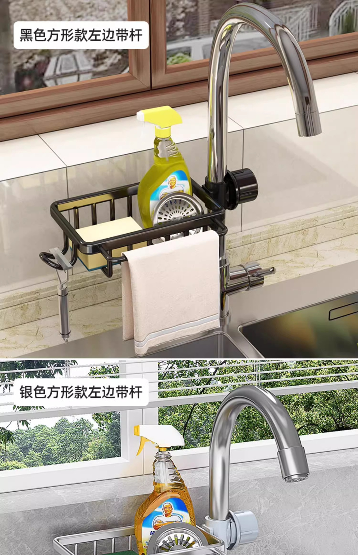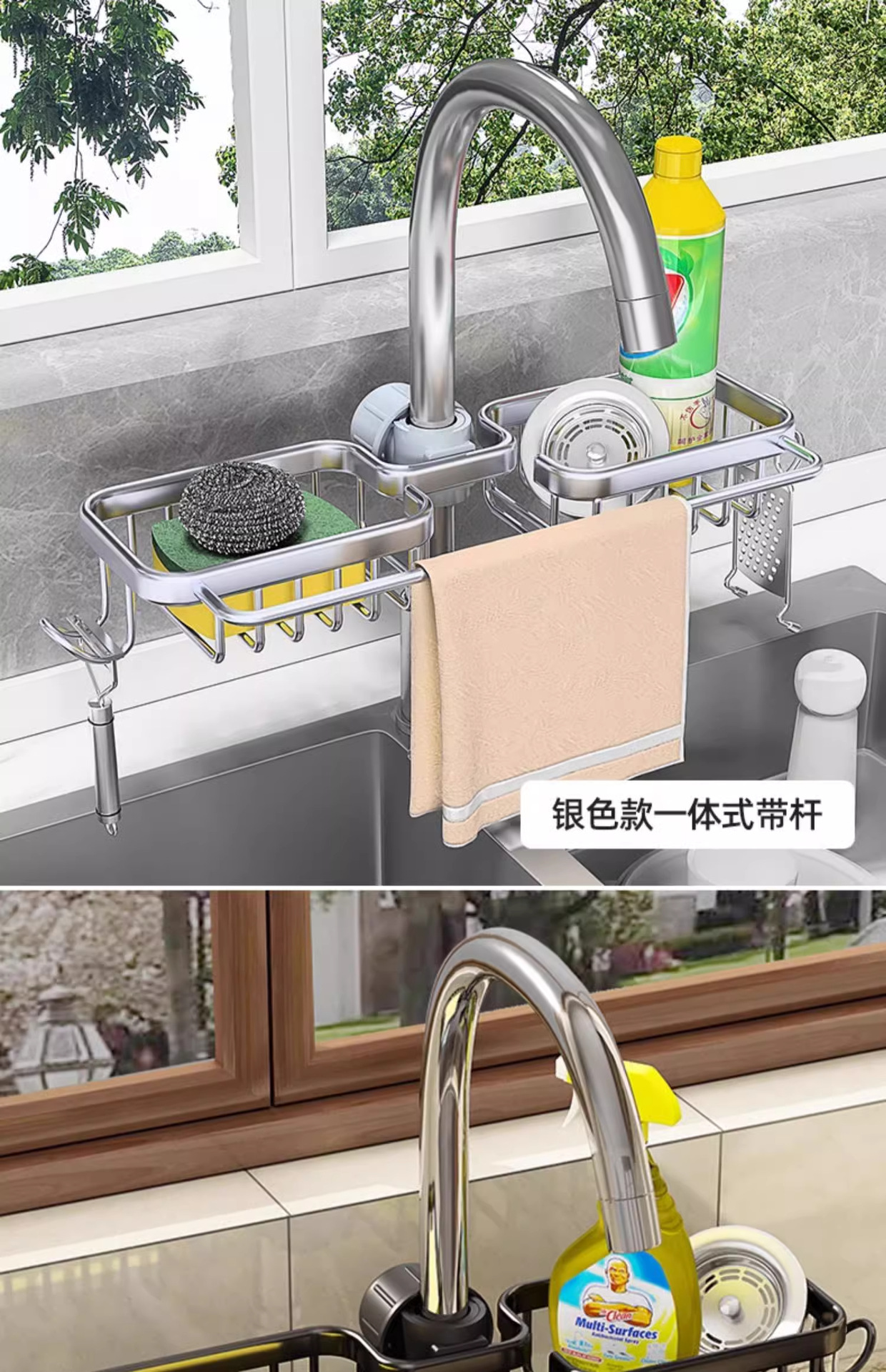 • 막대와 후크가 있는 스테인레스 스틸 수도꼭지 보관함