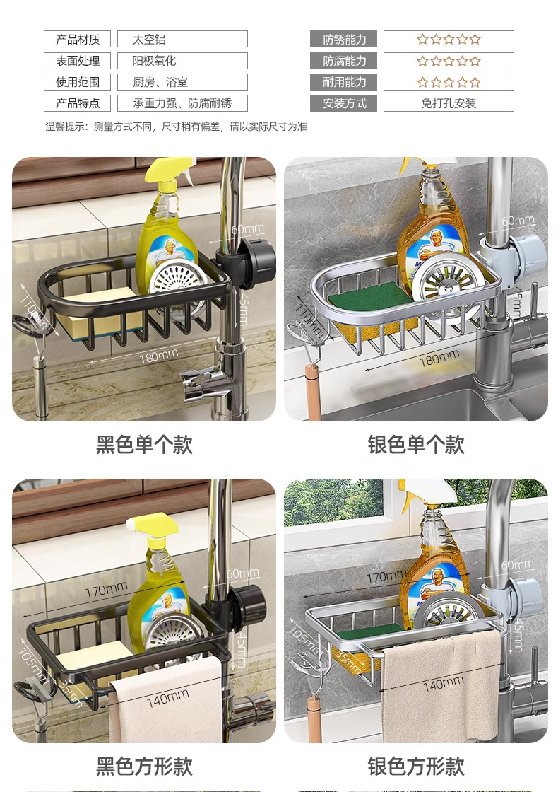 스테인레스 스틸 주방 수도꼭지 저장 랙 식기 세척기 싱크 탱크 랙 배수 바구니 스폰지 브러시 래그 저장 랙