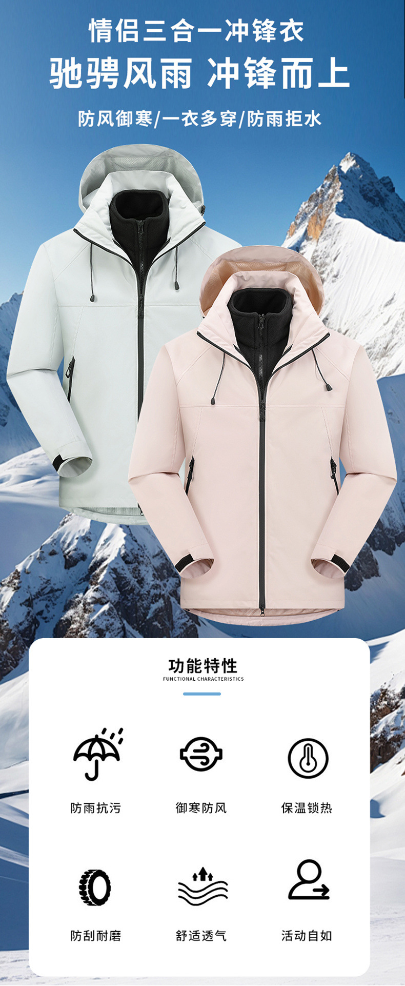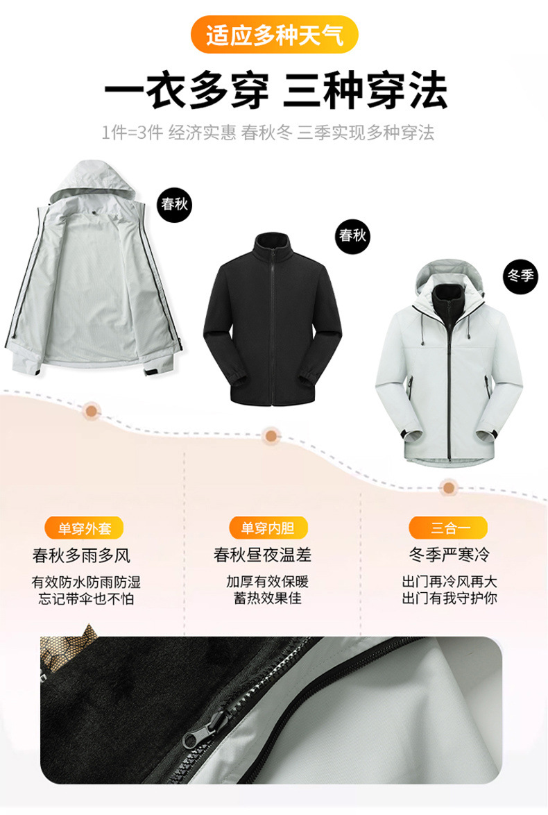 [Graphene] 산 야외 3 대 1 충전 의류 남성 및 여성 이동식 등산 세트 맞춤 로고스토어 가기