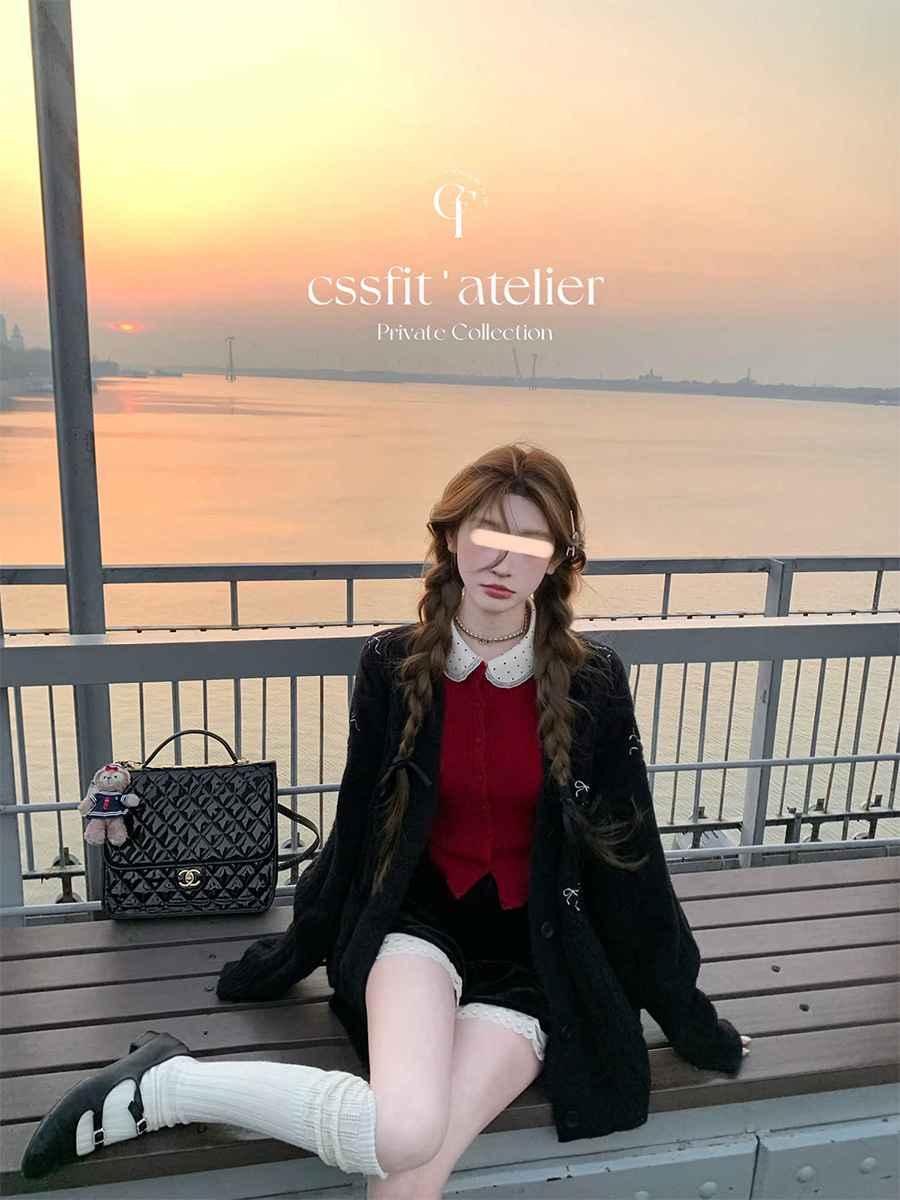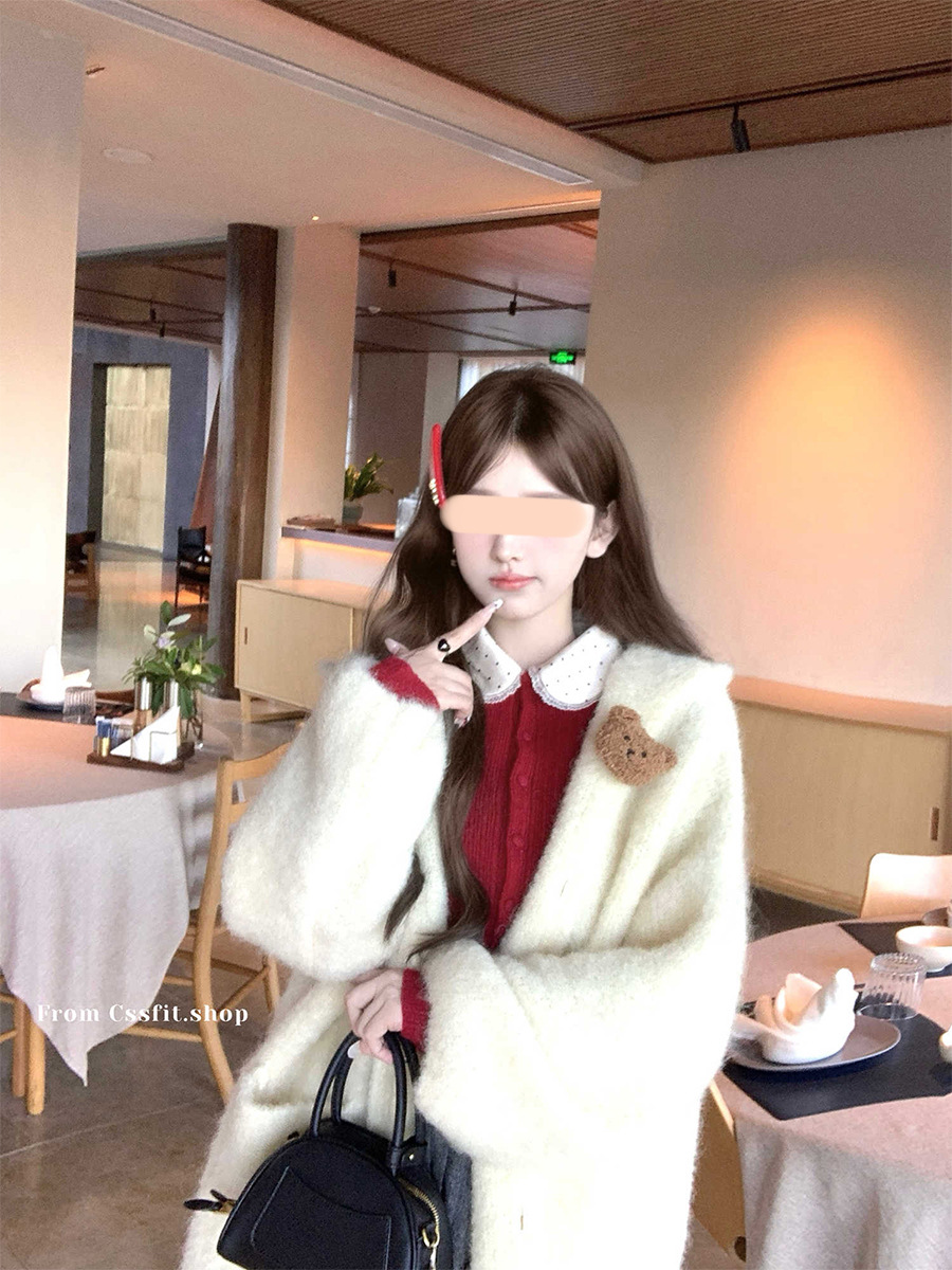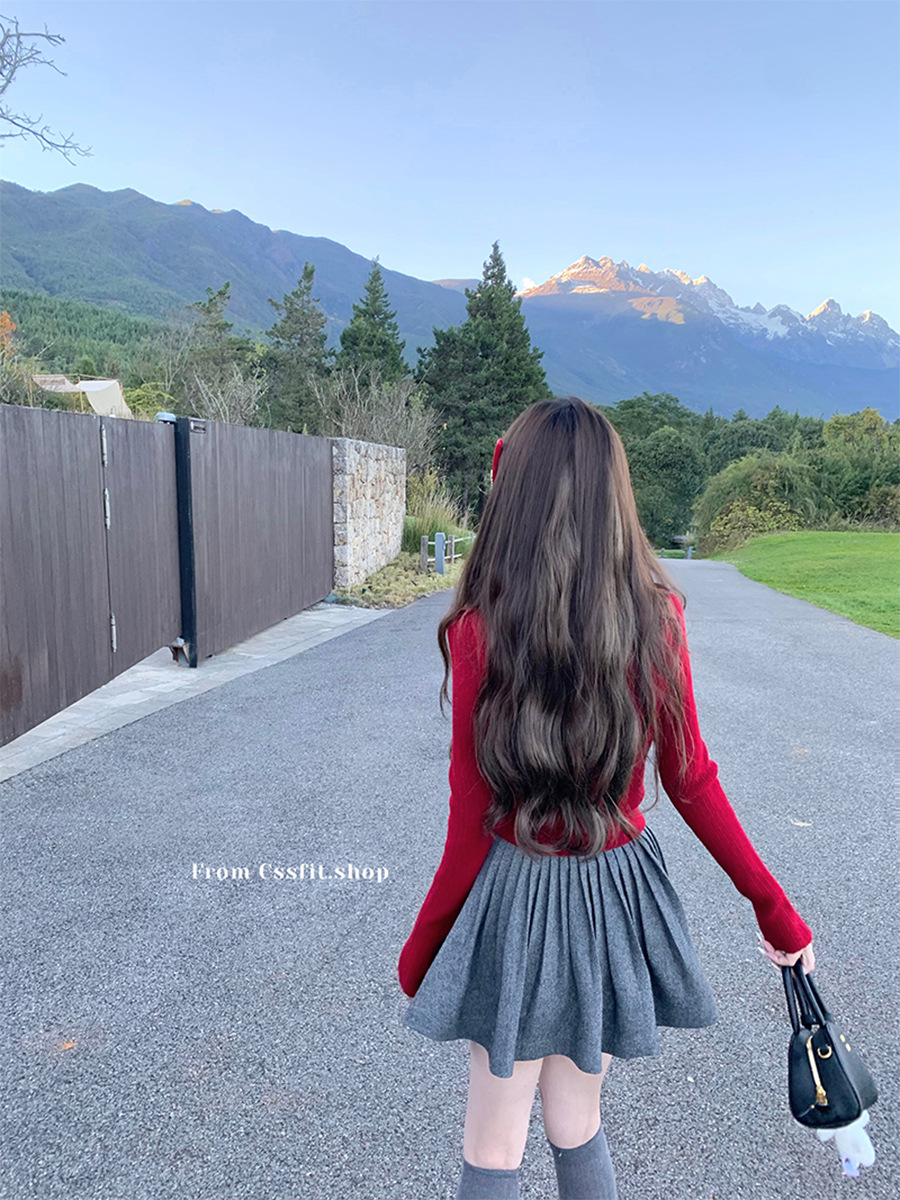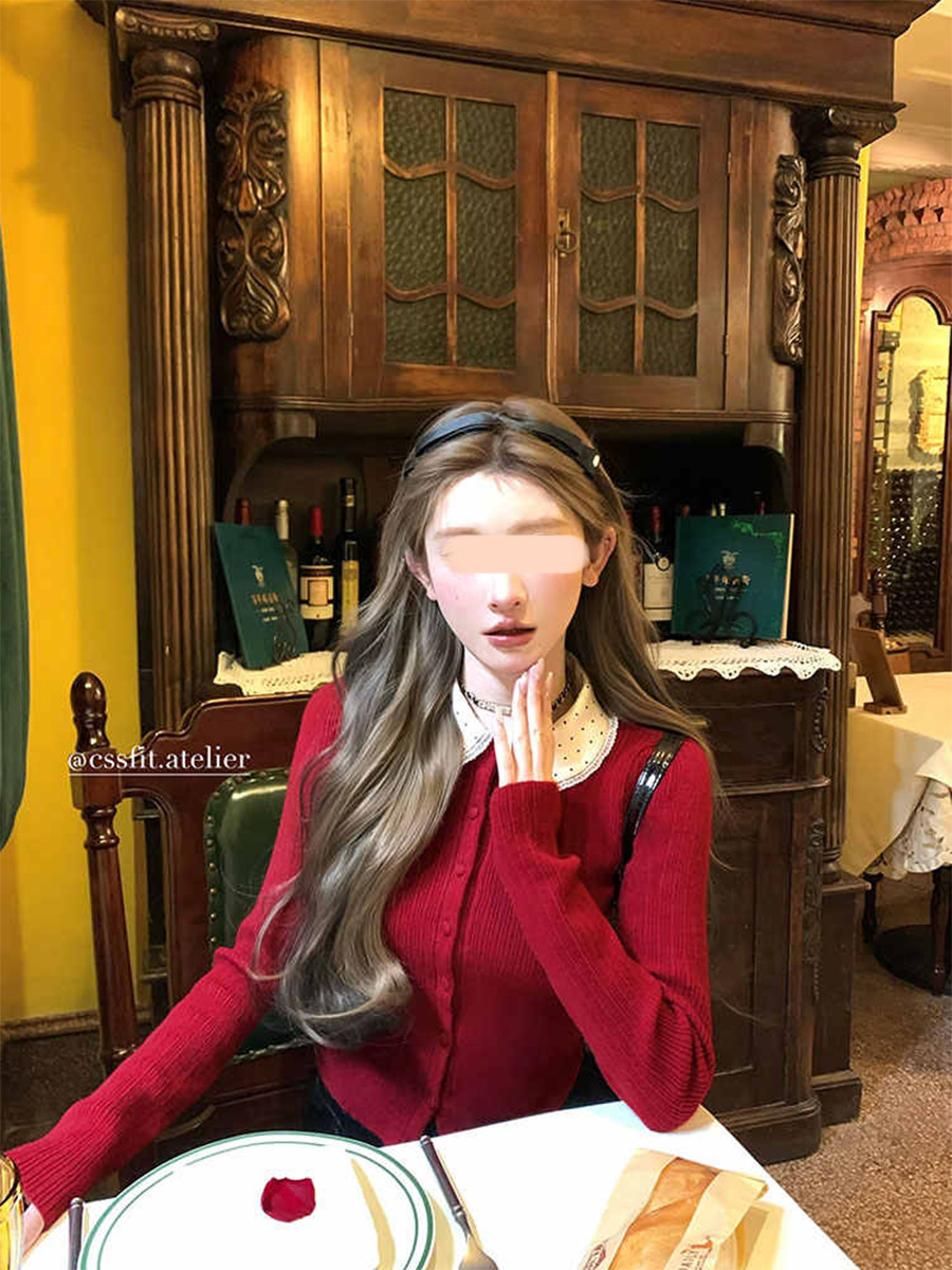 늦은 우산 우산 24/fw 크리스마스 애호가 크리스마스 레드 웨이브 레이스 옷깃 슬림 니트 카디건 탑스토어 가기