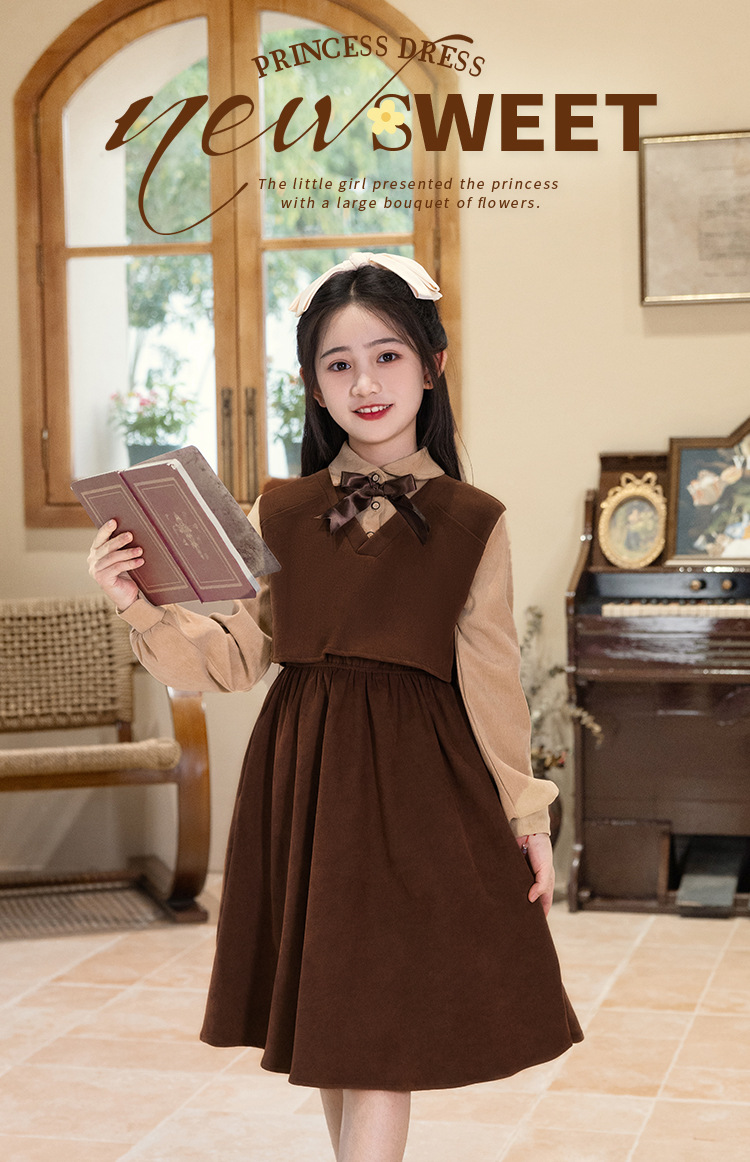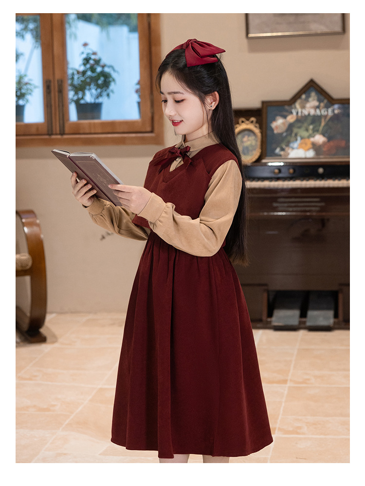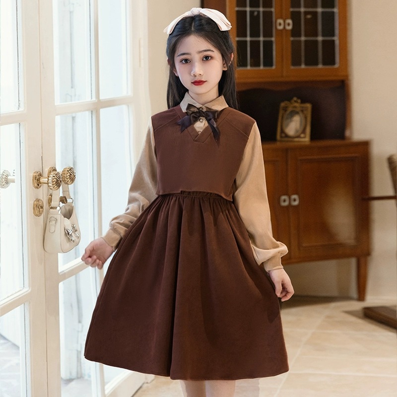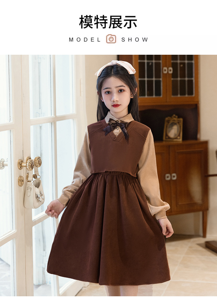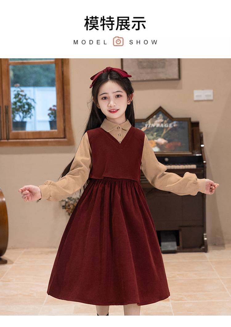 Cuhk 소녀 봄과 가을 새로운 유행 대학 스타일 POLO 칼라 가짜 투피스 원피스 캐주얼 가을 원피스스토어 가기